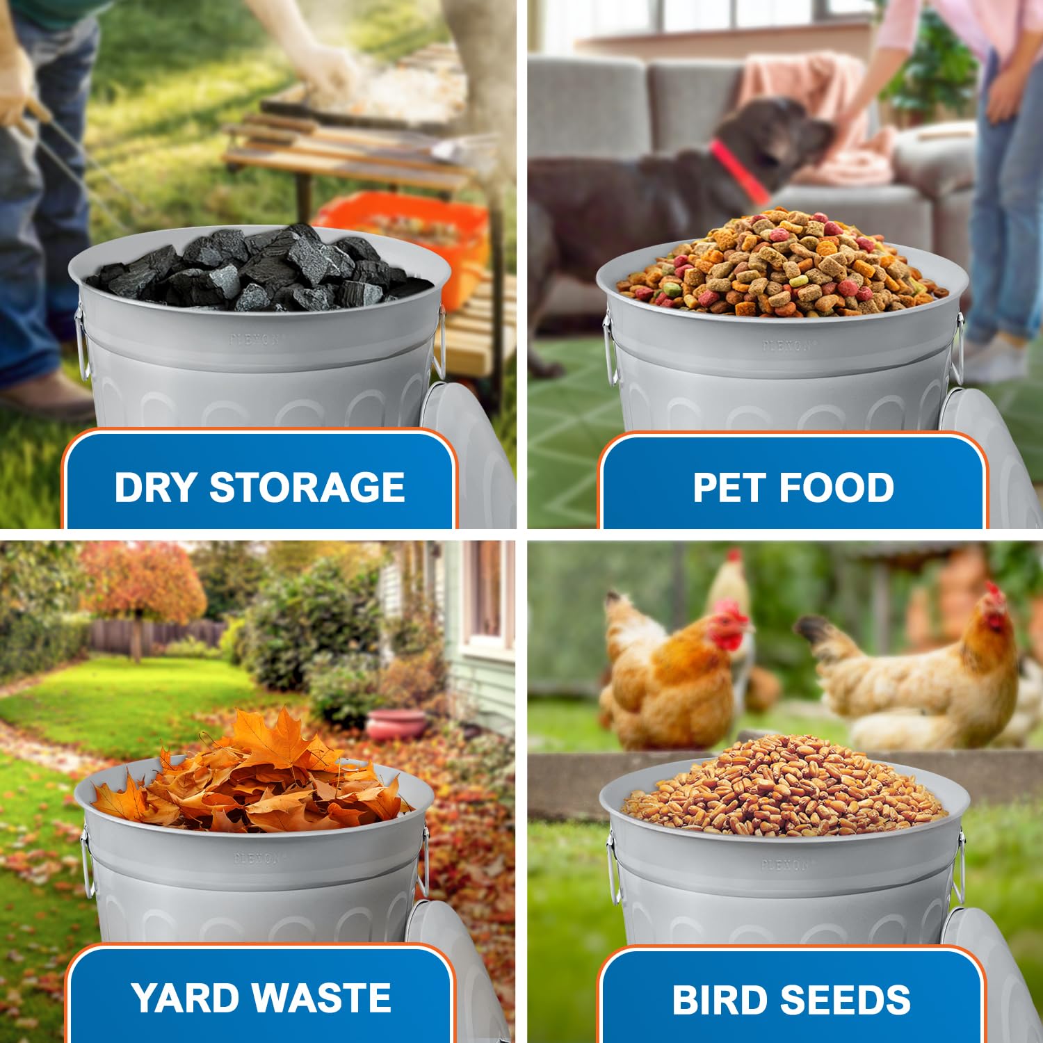 - Durable Construction: The Plexon 13-gallon galvanized steel trash can with lid is made from heavy-duty materials, perfect as an outdoor trash can with lid or a farmhouse garbage can for your kitchen, garage, or home.
