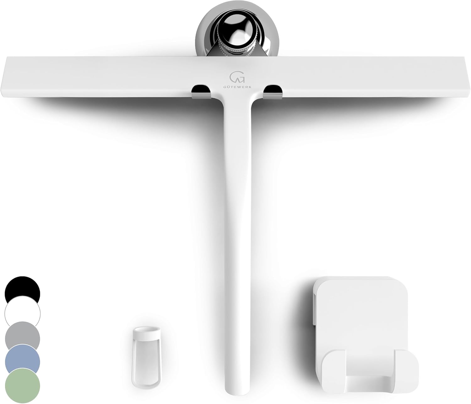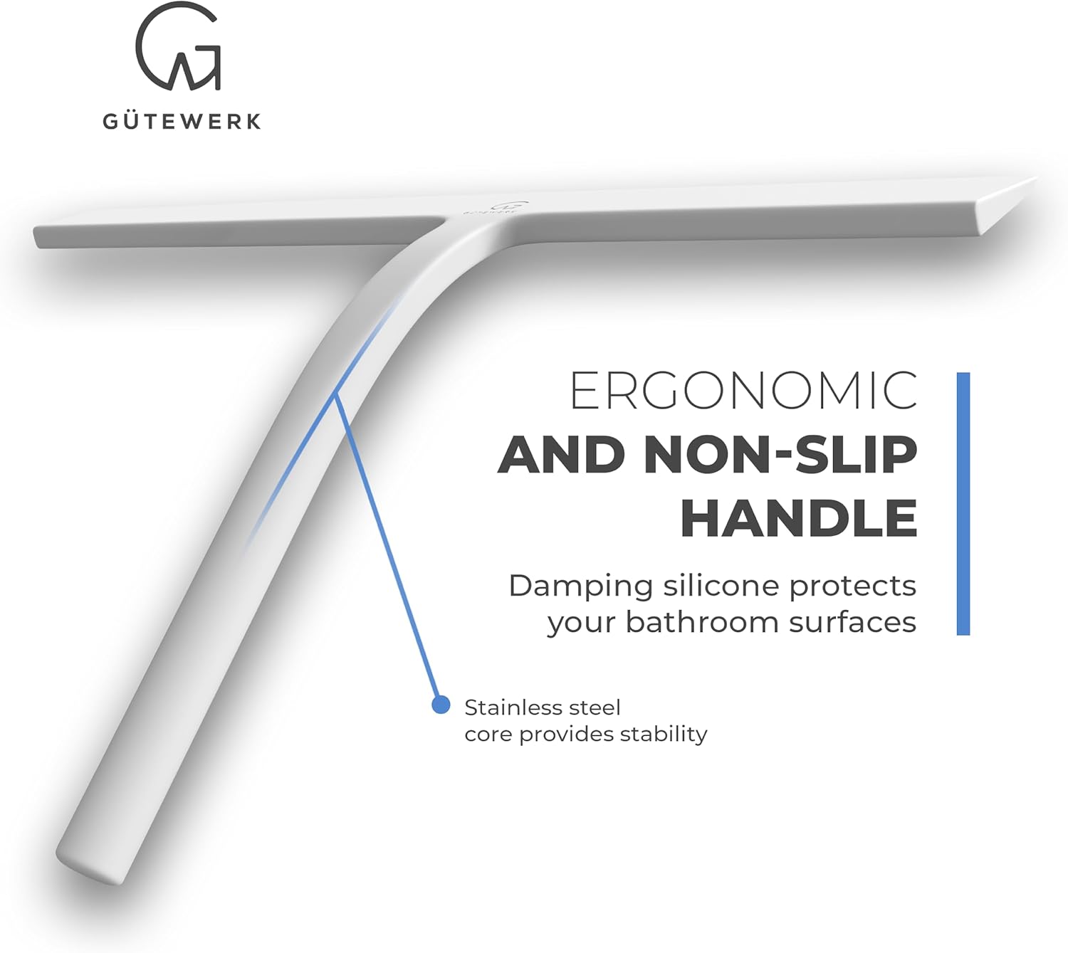 GÜTEWERK Shower Squeegee for Glass Doors, Silicone Window Squeegee, Bathroom and Glass Cleaning - White - 13 Inch