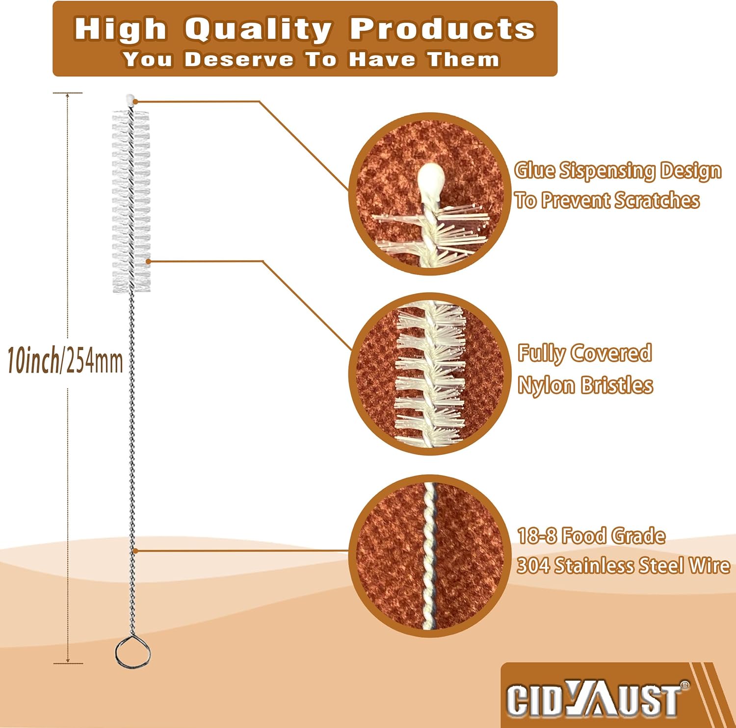 - 【SIZE & QUANTITY】This set includes 6 durable long straw cleaner brushes (10" total + 2.8" bristles + 0.4" silicone tip). Perfect as water bottle cleaner brush for tumblers, small bottle brush for hummingbird feeders, and pipe cleaner brush for 3-12mm straws.