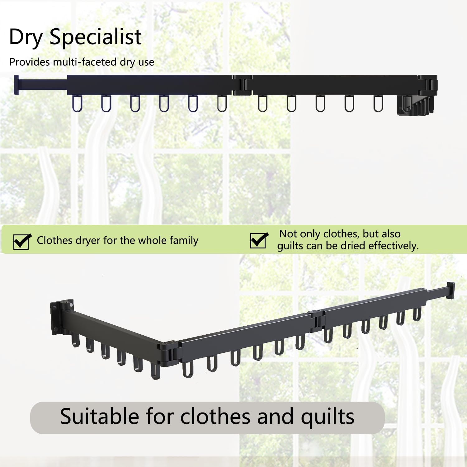 - A Variety of Applications: the drying rack is suitable for placing on the balcony/bathroom/laundry room or next to the bedroom window, in order to work better, we recommend that you drill holes to install better, can better grip the wall, it will not fall easily