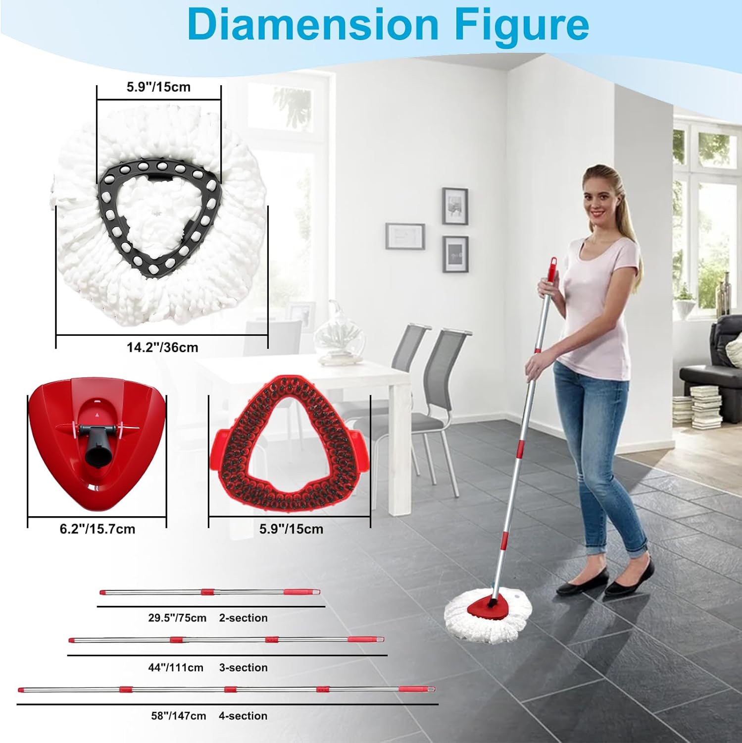 - 【Easy to Install】: Replacement Head/Brush and Base snap together, very solid; just remove the dirty mop head and snap the new spin mop refill into the triangular mop base, after you hear a "click", it means the replacement is successful