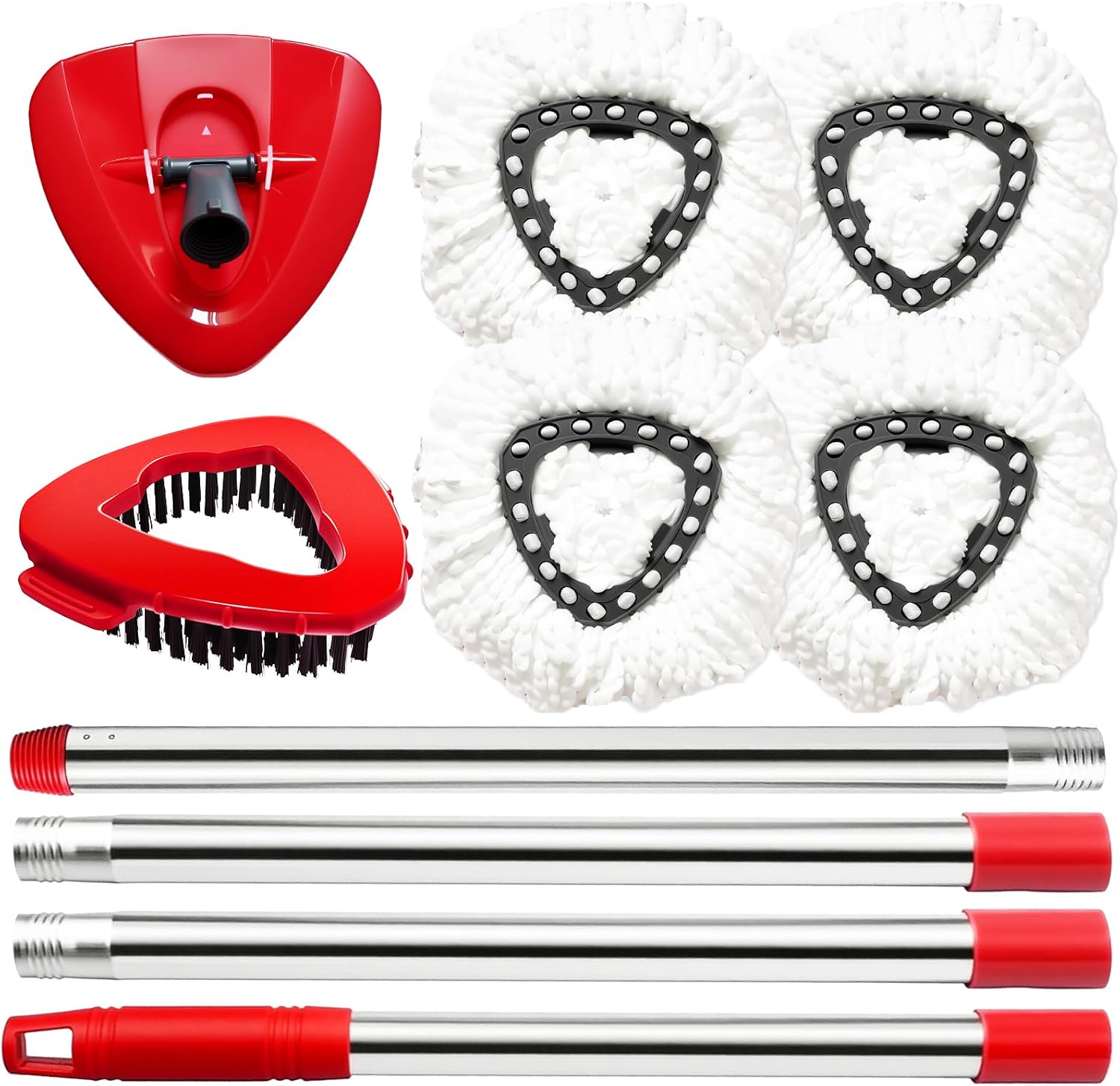 - 【Package Include】:Your package includes 4 mop replacement heads, 1 mop handle, 1 triangle mop base and 1 scrub mop brush, if you aren’t happy simply let us know and our professional customer service team are always glad to help