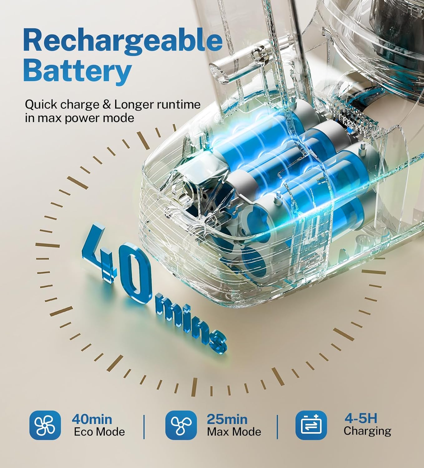 - 【40-Min Runtime for Home】– The 2200mAh rechargeable battery powers 40 minutes of cordless cleaning (25min in Max Mode), covering entire floors in home without frequent recharging, no problem in large and small areas like apartments, tight dorm rooms, or office spaces.