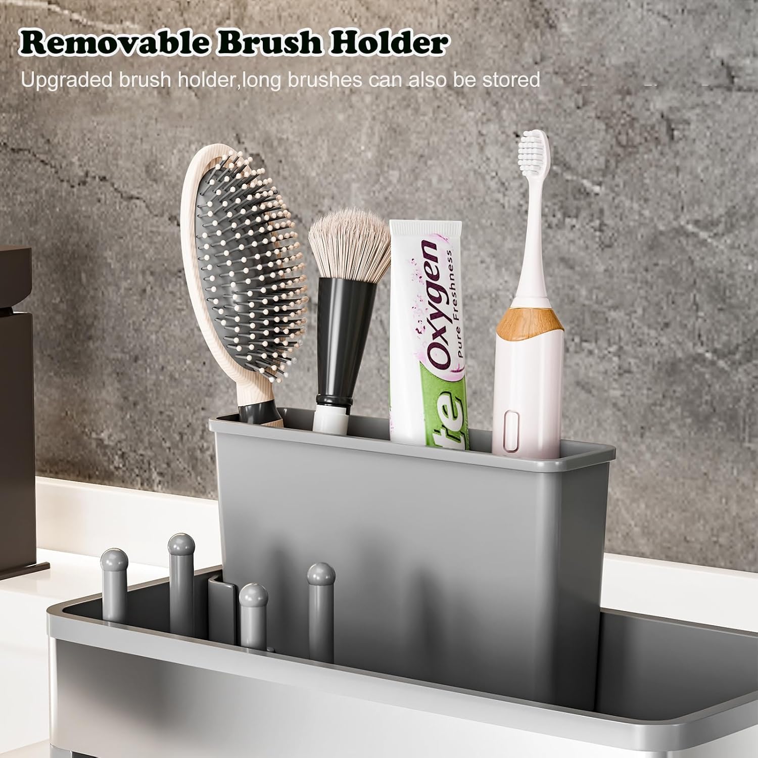 Sponge Holder for Kitchen Sink,Sink Caddy Organizer with Removable Brush Holder,Kitchen Countertop Soap Dispenser Storage with Detachable Towel Rack, Grey