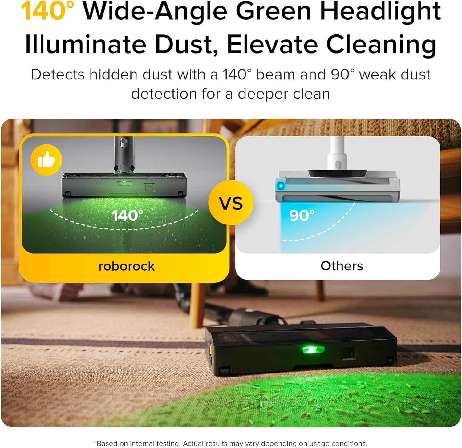 - 140° Green LED Dust Detection: A wide-angle green LED light reveals fine dust and hidden particles, especially along edges and under furniture, making every clean more effective with the innovative roborock cordless vacuum cleaner.