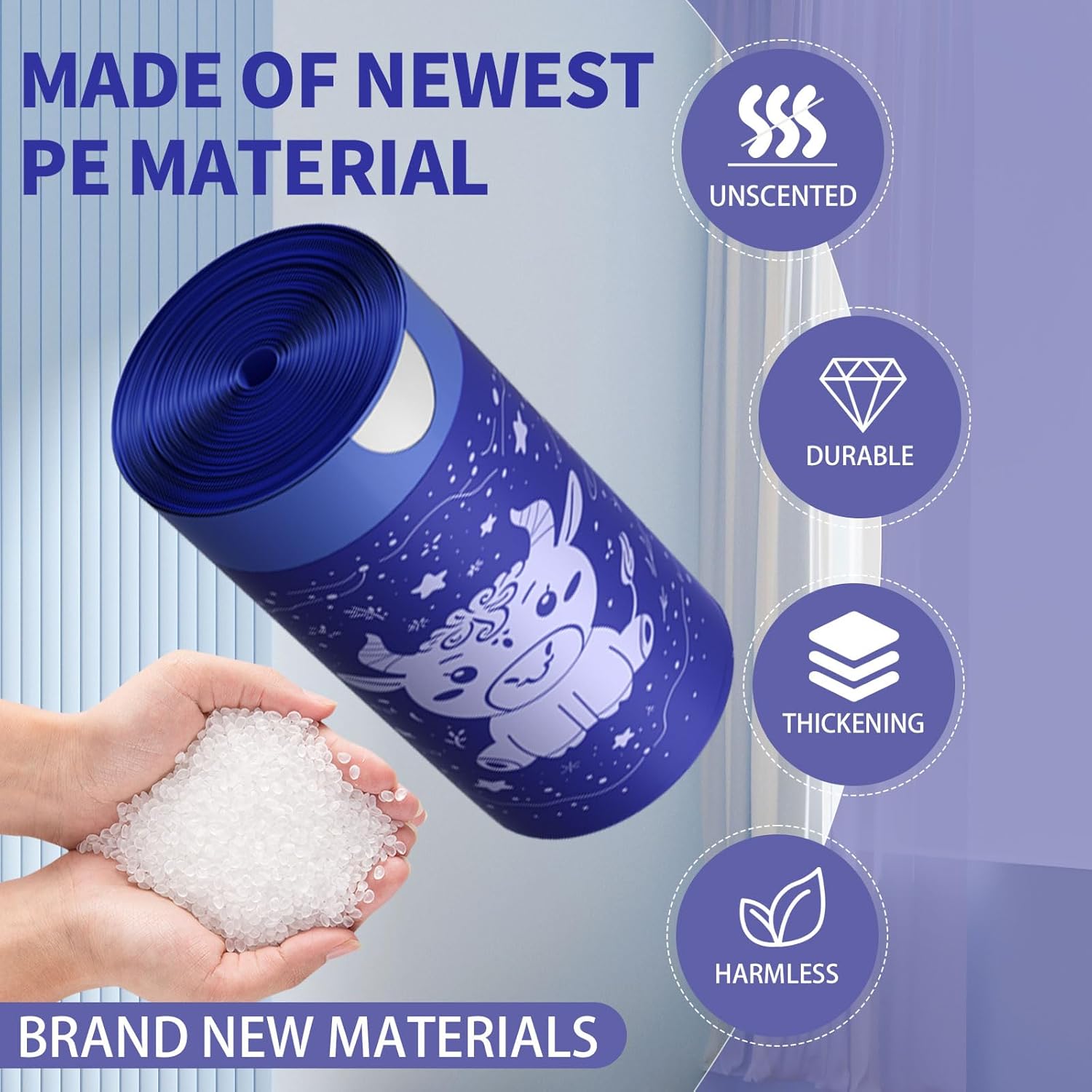 - 【 Material】: All of our 8 gallon garbage bags are made of HDPE material. This material can make the garbage bag stronger
