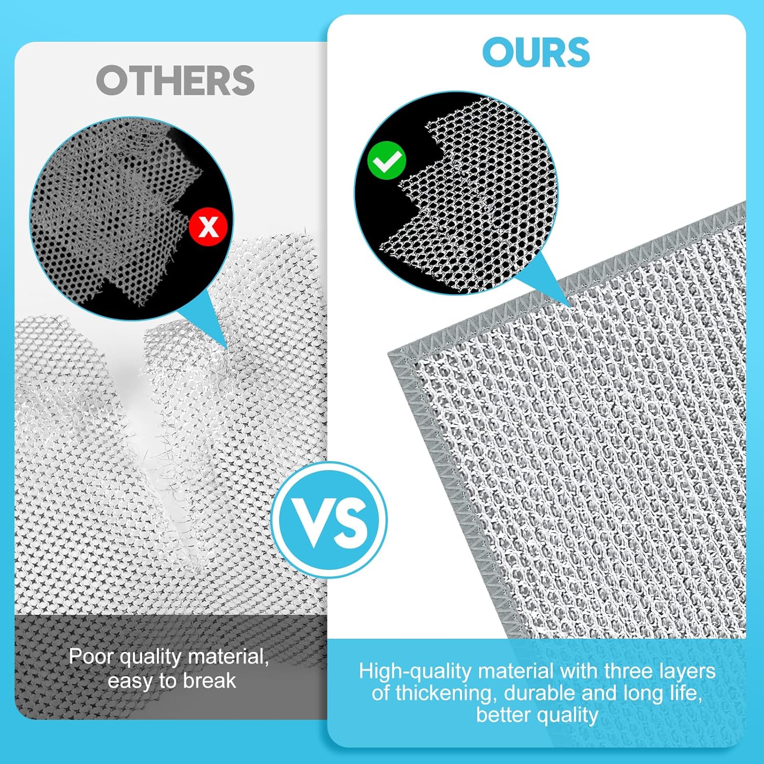 - 【Perfectly Sized】You will receive 10 pieces of well-made multipurpose wire miracle cleaning cloths, each measuring 7.87”x 7.87”, with hemmed edges so they won't fall apart during cleaning. This design is suitable for handheld use without hurting your hands, provides enough surface for easy maneuvering, and covers dirt effectively, making it a top choice for everyday kitchen cleaning.