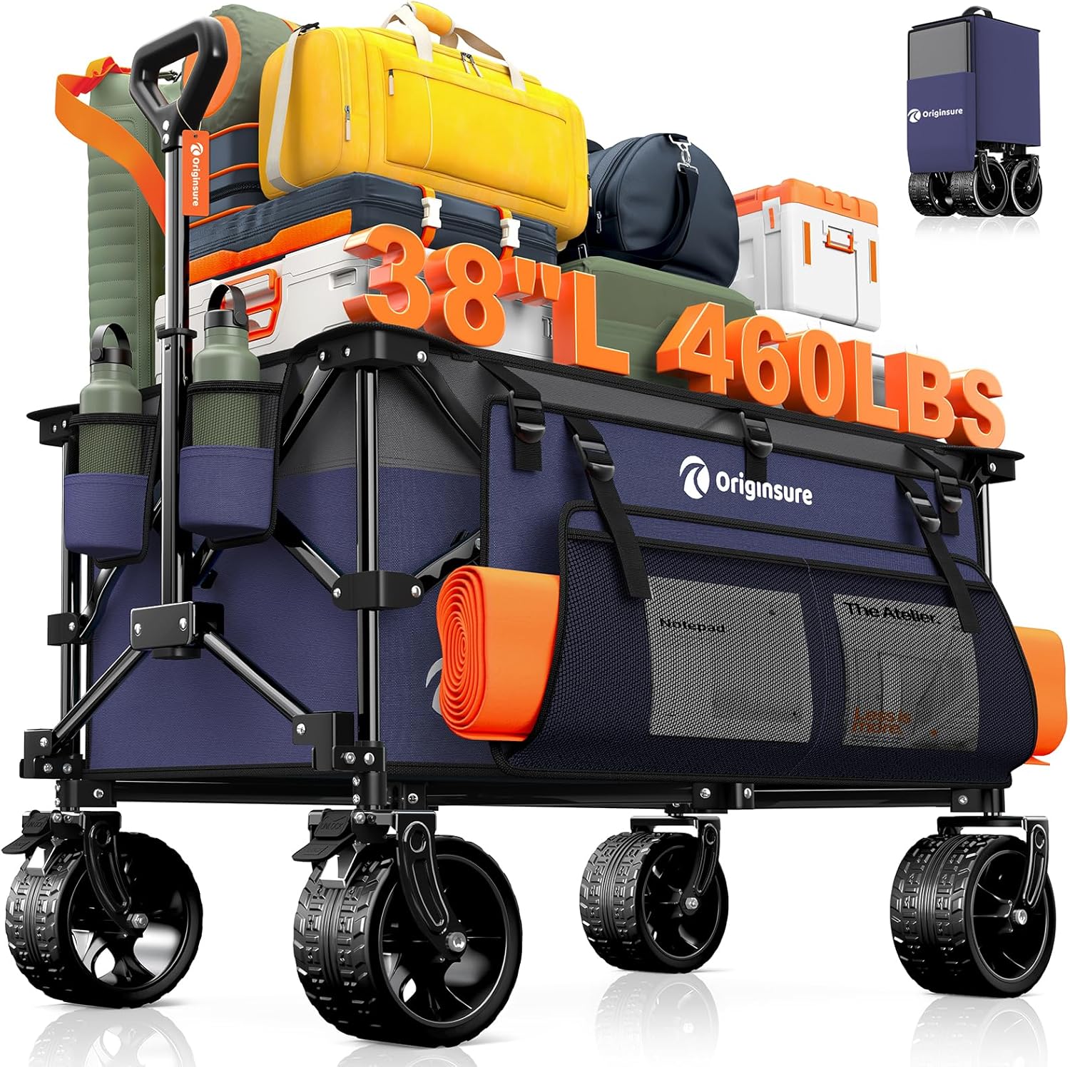 - ใ๐ณ.๐ฒ๐ต ๐ฐ๐ ๐ณ๐ ๐๐ฎ๐ฟ๐ด๐ฒ ๐๐ฎ๐ฝ๐ฎ๐ฐ๐ถ๐๐ ๐๐ถ๐๐ต ๐ฆ๐บ๐ฎ๐น๐น๐ฒ๐ฟ ๐๐ผ๐น๐ฑ๐ฒ๐ฑ ๐ฆ๐ถ๐๐ฒ ๐ฃ๐ผ๐ฟ๐๐ฎ๐ฏ๐น๐ฒ ๐๐ผ๐น๐น๐ฎ๐ฝ๐๐ถ๐ฏ๐น๐ฒ ๐๐ฒ๐ฎ๐ฐ๐ต ๐ช๐ฎ๐ด๐ผ๐ปใOriginsure foldable wagon cart, 37.40 "L x 24.21 "W x 24.00 "H large unfolding size, 7.69 cu ft/220L massive storage space, double the capacity of similar wagons. Adopting an innovative folding design that maintains its height, the Capacity reduces to 1.36 cu ft when folded, only 1/3 of other carts. Compact and space-saving, it can be perfectly stored in the car trunk and room corners.