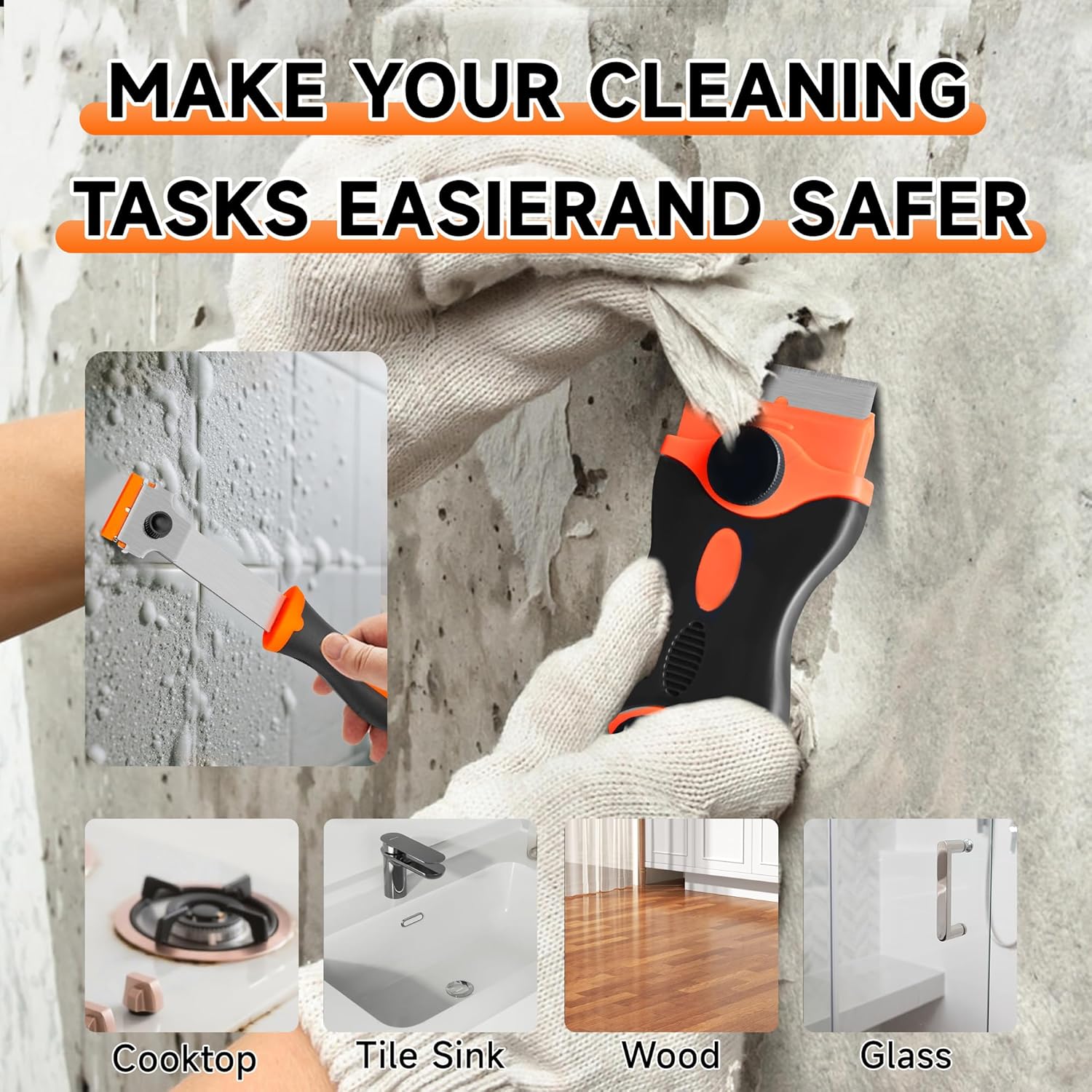 - 【Upgraded long handle razor blade scraper tool】 Our versatile long-handled razor scraper is perfect for tackling hard-to-reach areas with ease. Featuring a TPR non-slip stripe handle, it offers a comfortable grip that stays secure even during tough cleaning tasks. Made from high-quality alloy steel, it's resistant to wear and rust, ensuring long-lasting durability. The extended handle allows for powerful stain removal from various angles, making your cleaning routine more efficient. Upgrade your toolkit and say goodbye to stubborn grime—this scraper is designed to make your life easier!