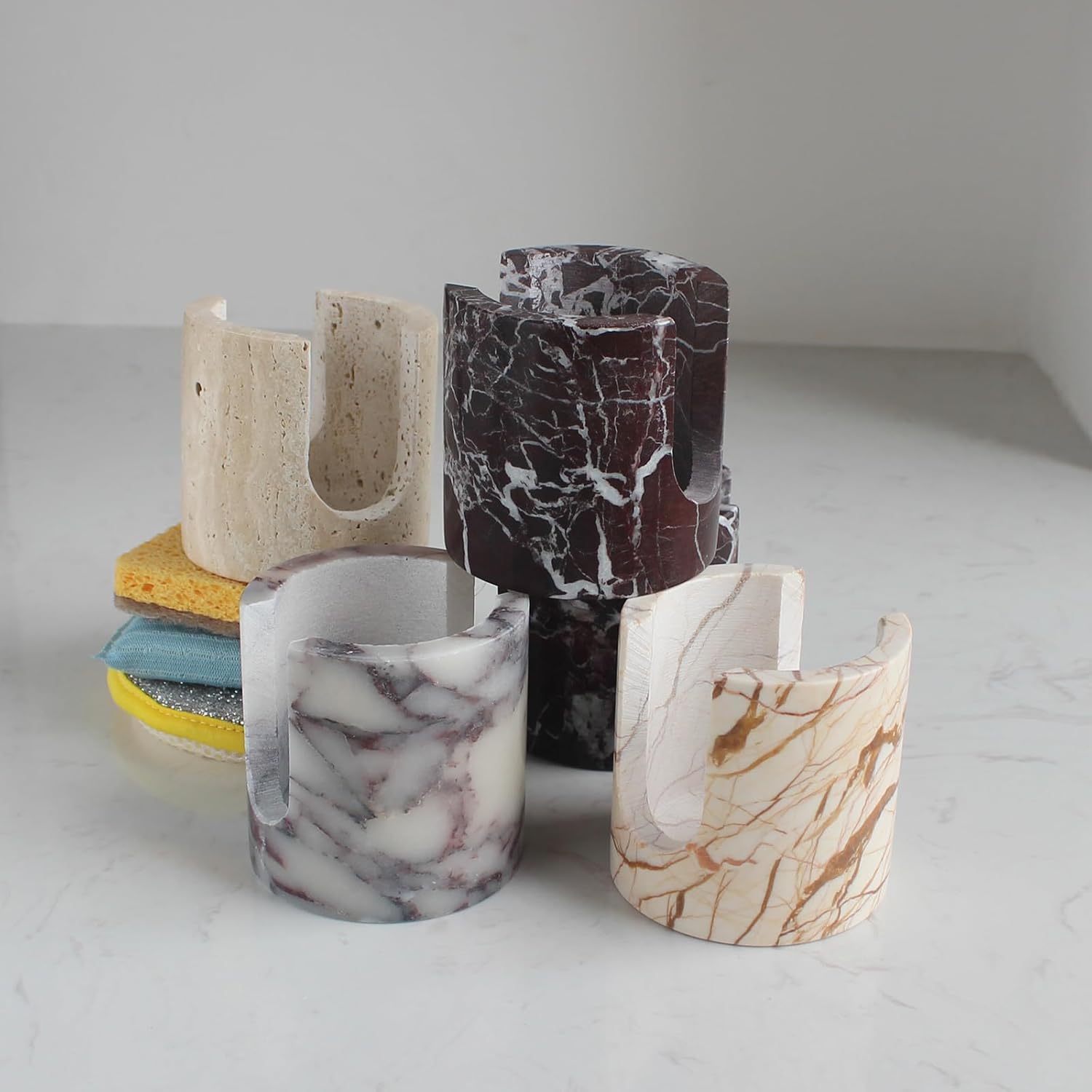 Natural Rosa Levanto Marble Sponge Holder for Kitchen Counter, Drying Rack, Sponge Caddy for Sink Organizer