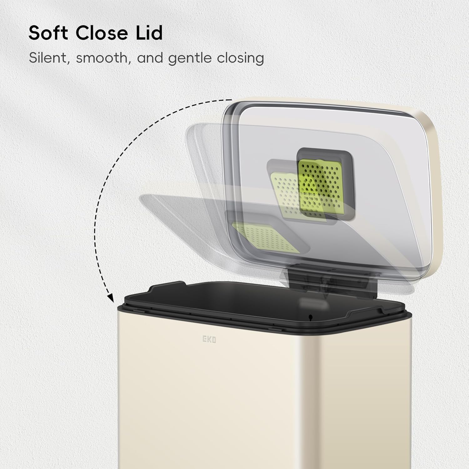 - Whisper-quiet Closing - The rugged step pedal mechanism is built to withstand years of daily use, and the bi-force damper soft open and close lid prevents slamming and banging.