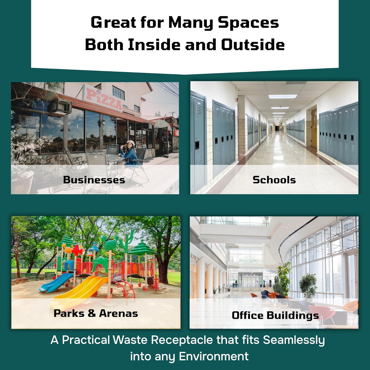 - LOW MAINTENANCE WITH EASY-CLEAN LINER: Comes with a removable liner for quick, hygienic waste disposal. No need for costly garbage bags—simply lift out for easy emptying. Ideal for janitorial staff in commercial trash cans and outdoor trash bins.