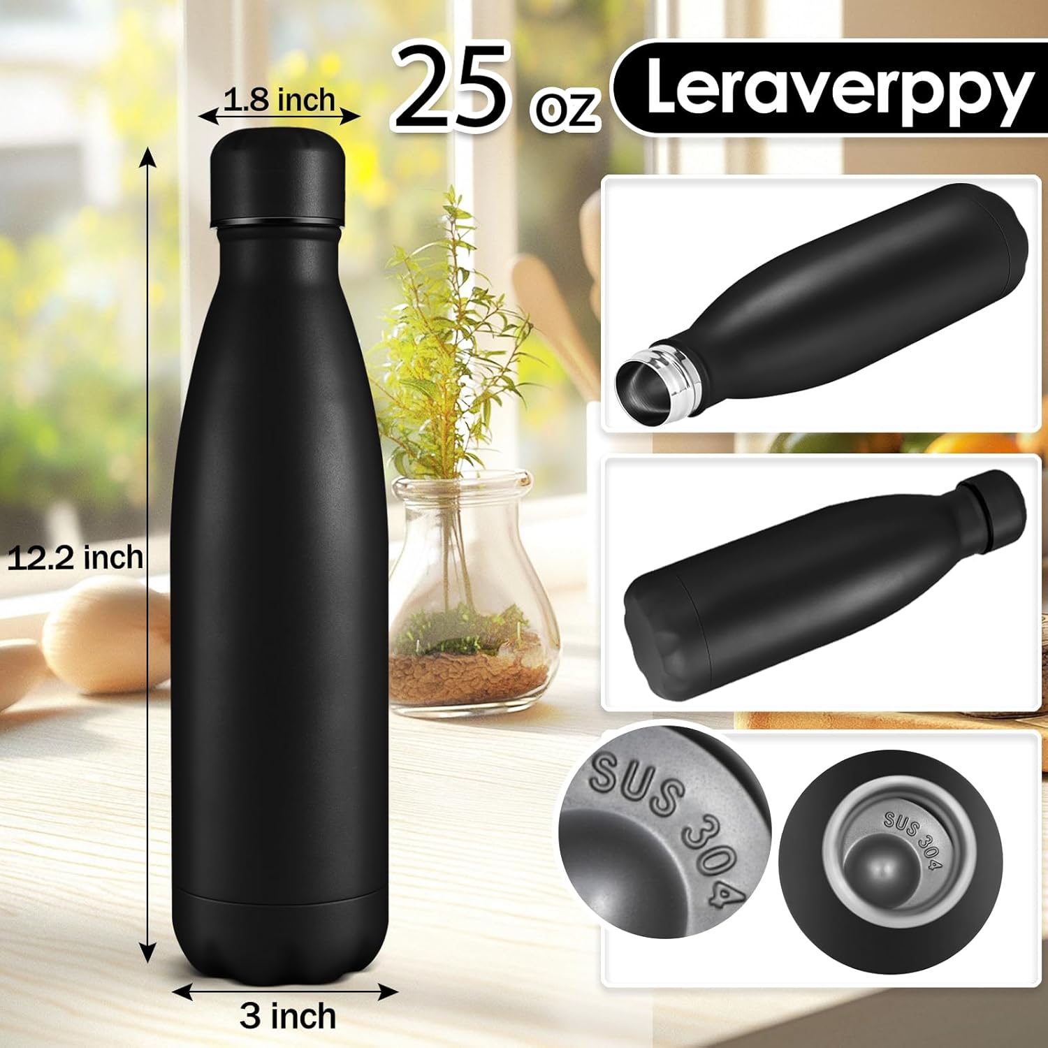 25oz Cola-Bottle Shaped Stainless Steel Leak-proof Water Bottle,Double Wall Vacuum Insulated Metal,Travel Mug For Sports Indoors & Outdoors,BPA-Free School Kids Flasks,Black(2 Pack)