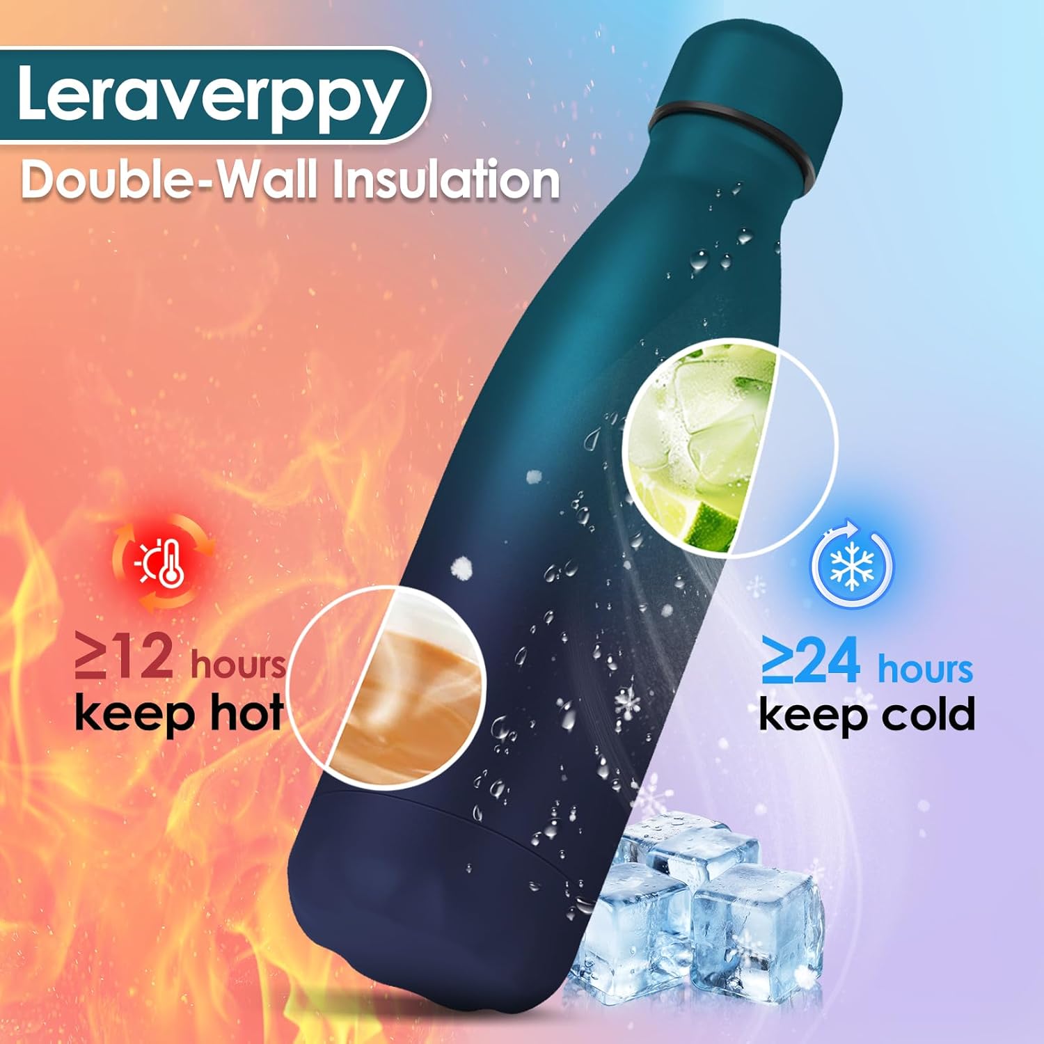 - 《Double Wall Vacuum Metal Bottle and Amazing Gift》This insulated water bottle is double walled and vacuum sealed,which keeping them ice cold for 24 hours and steaming hot for 12 hours.With healthy and reusable stainless steel,our durable everyday water bottle is suitable for everyday use and also as an amazing gift for yourself or your partners friends family colleagues employees teachers etc.
