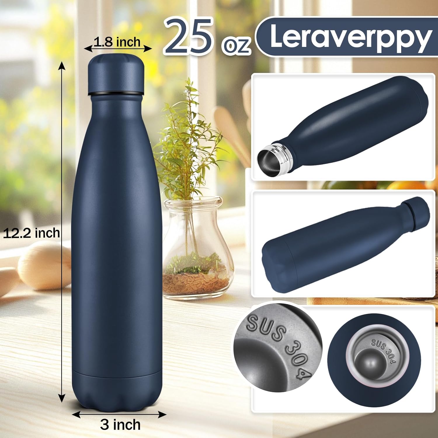 25oz Cola-Bottle Shaped Stainless Steel Leak-proof Water Bottle,Double Wall Vacuum Insulated Metal,Travel Mug For Sports Indoors & Outdoors,BPA-Free School Kids Flasks,Navy(2 Pack)