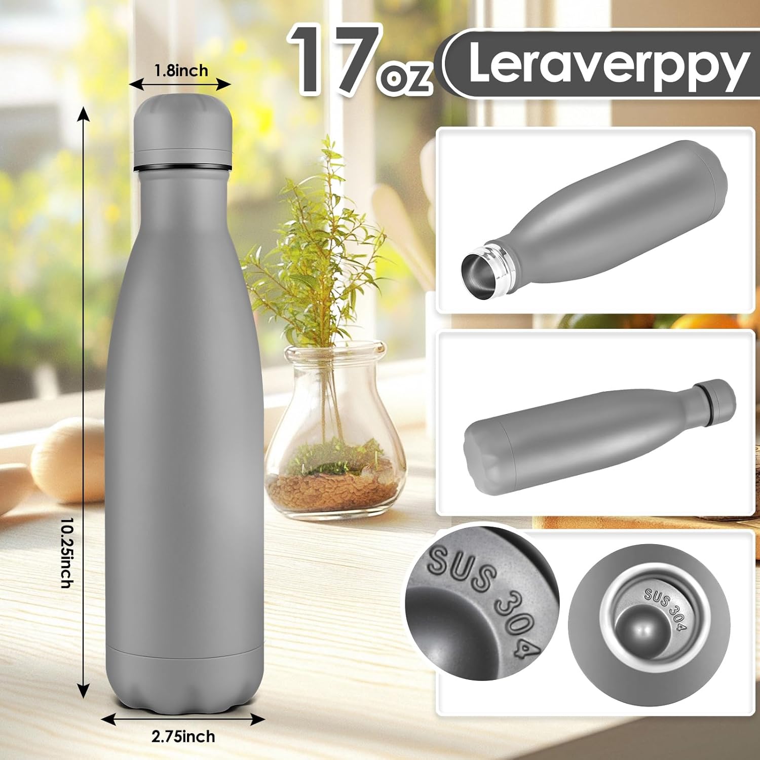 17oz Cola-Bottle Shaped Stainless Steel Leak-proof Water Bottle,Double Wall Vacuum Insulated Metal,Travel Mug For Sports Indoors & Outdoors,BPA-Free School Kids Flasks,Gray(1Pack)