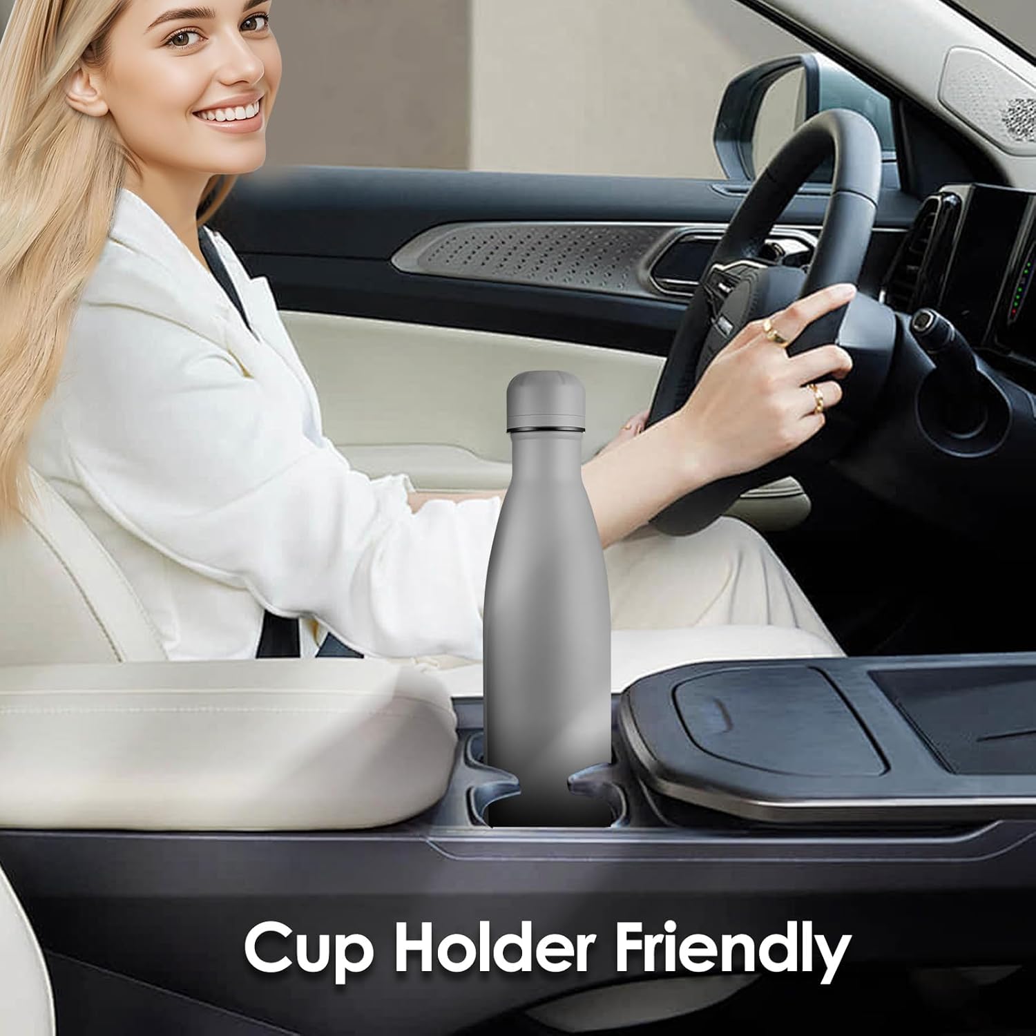- 《Portable Size and Wide Use》17oz insulated water bottle is the good size for kids and adults.With a portable lid and light weight so you can carry it anywhere with ease.The Convenient bottle is the good choice for the bike or car cup holder,side pockets of backpack,gym,school,work,camping trips,picnics and any other indoor or outdoor activity.