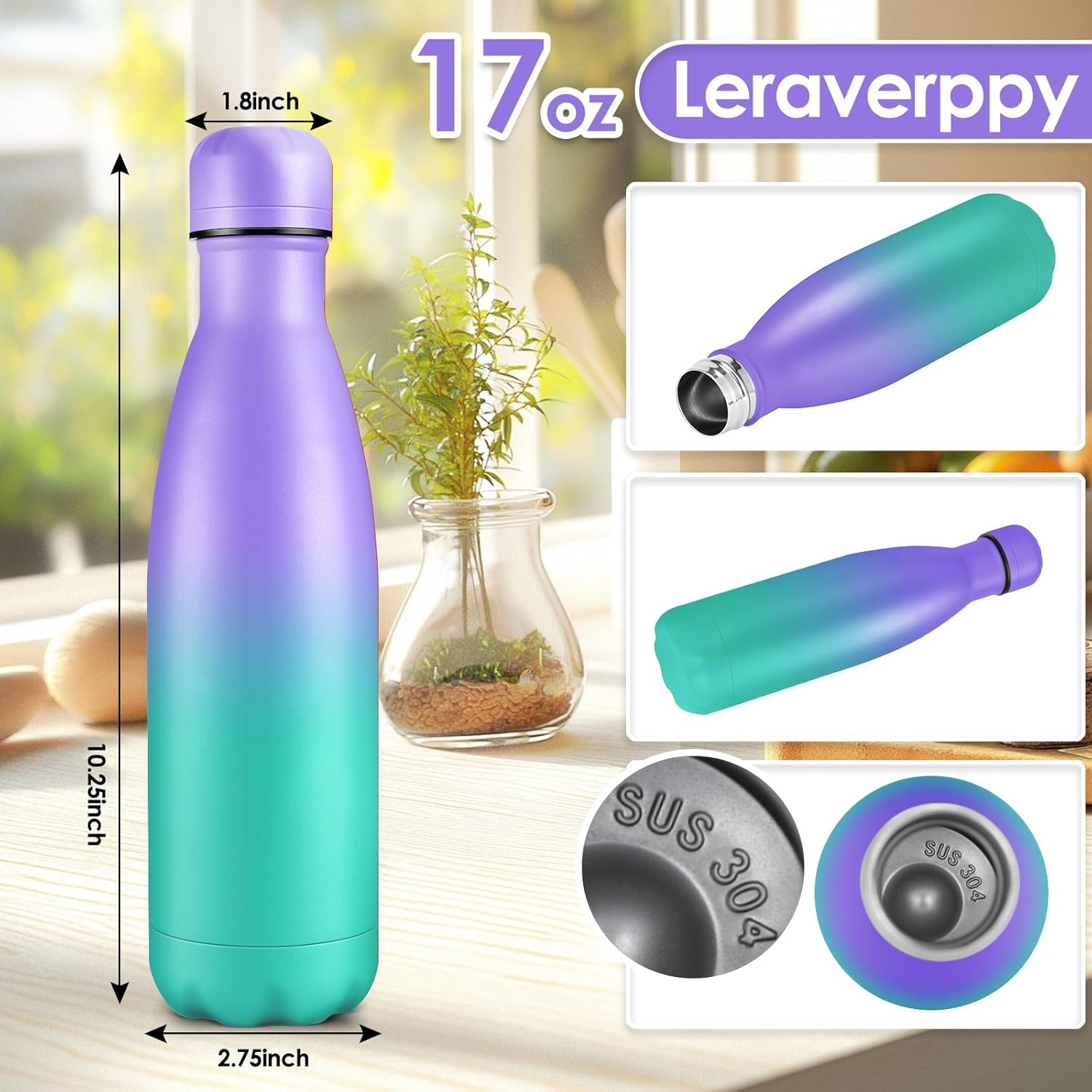 17oz Cola-Bottle Shaped Stainless Steel Leak-proof Water Bottle,Double Wall Vacuum Insulated Metal,Travel Mug For Sports Indoors & Outdoors,BPA-Free Kids Flasks,Purple Green(4Pack)
