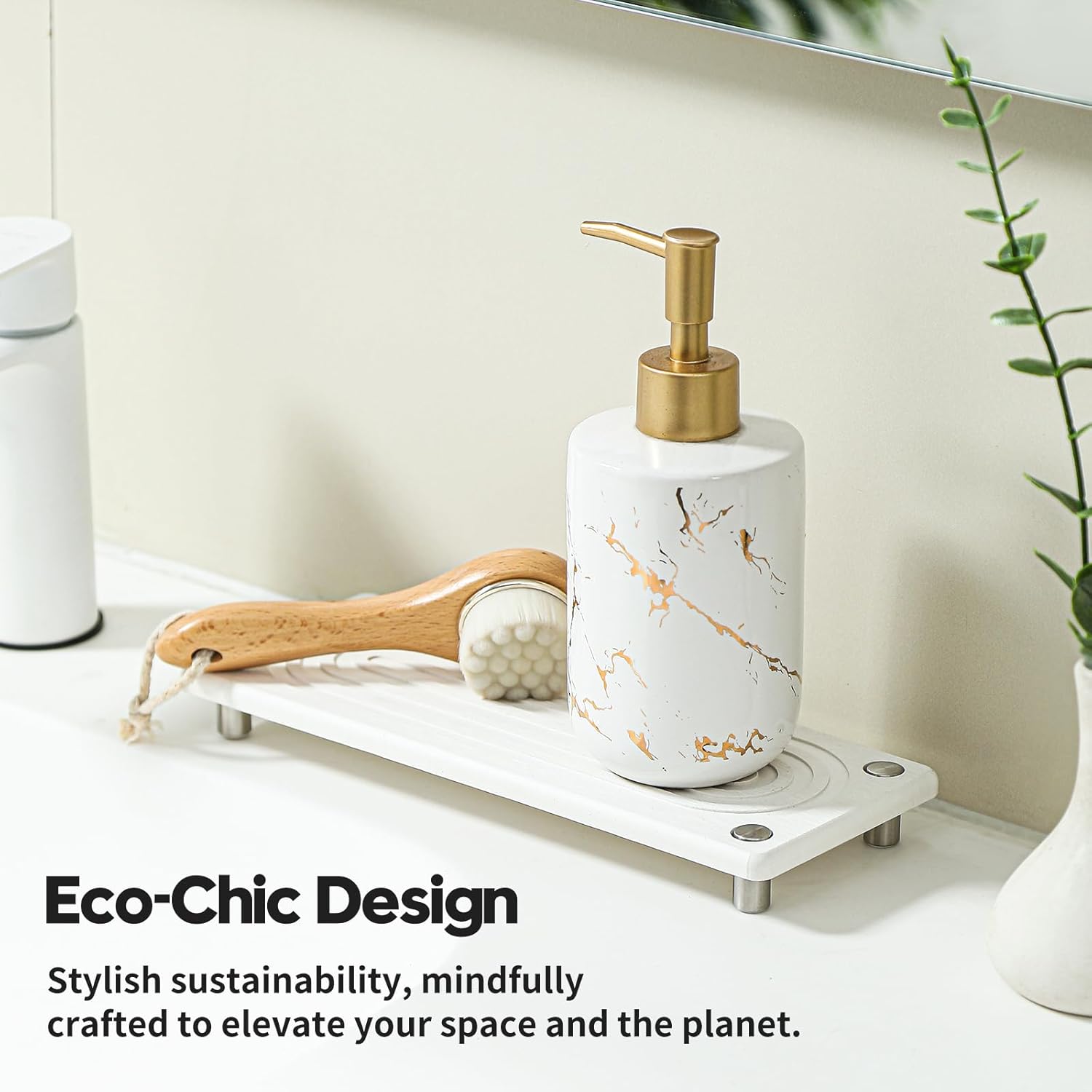 - 【Multifunctional Water Absorbing Stone Tray for Sink】 Using this tray for your soaps and brushes in the bathroom, or by the kitchen sink. The fast drying sink caddy provides you with a neat and orderly space for your home.