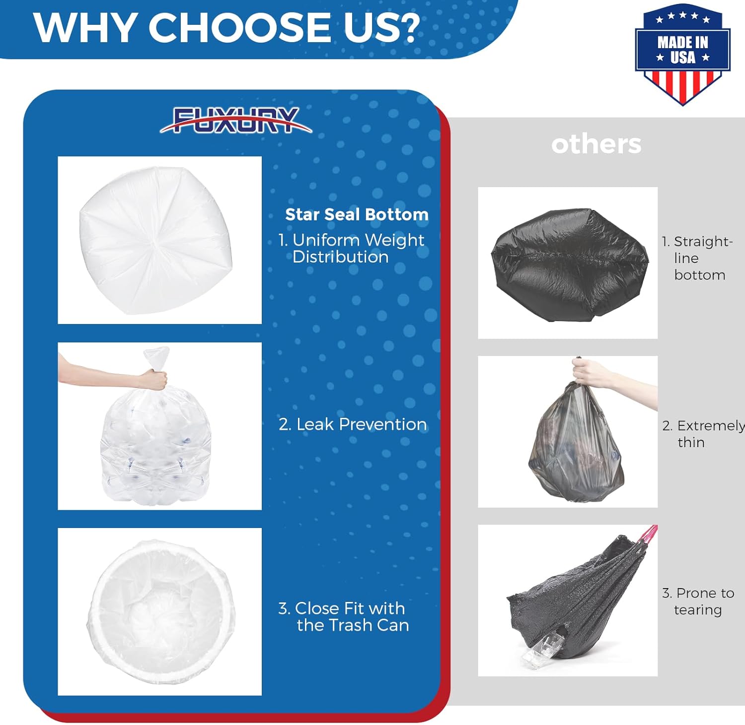 - [Proudly Made in USA] Manufactured domestically, these large bags meet high quality standards. Customers can trust consistent strength, durability, and performance with every bag, ensuring a reliable solution for daily or commercial waste management.