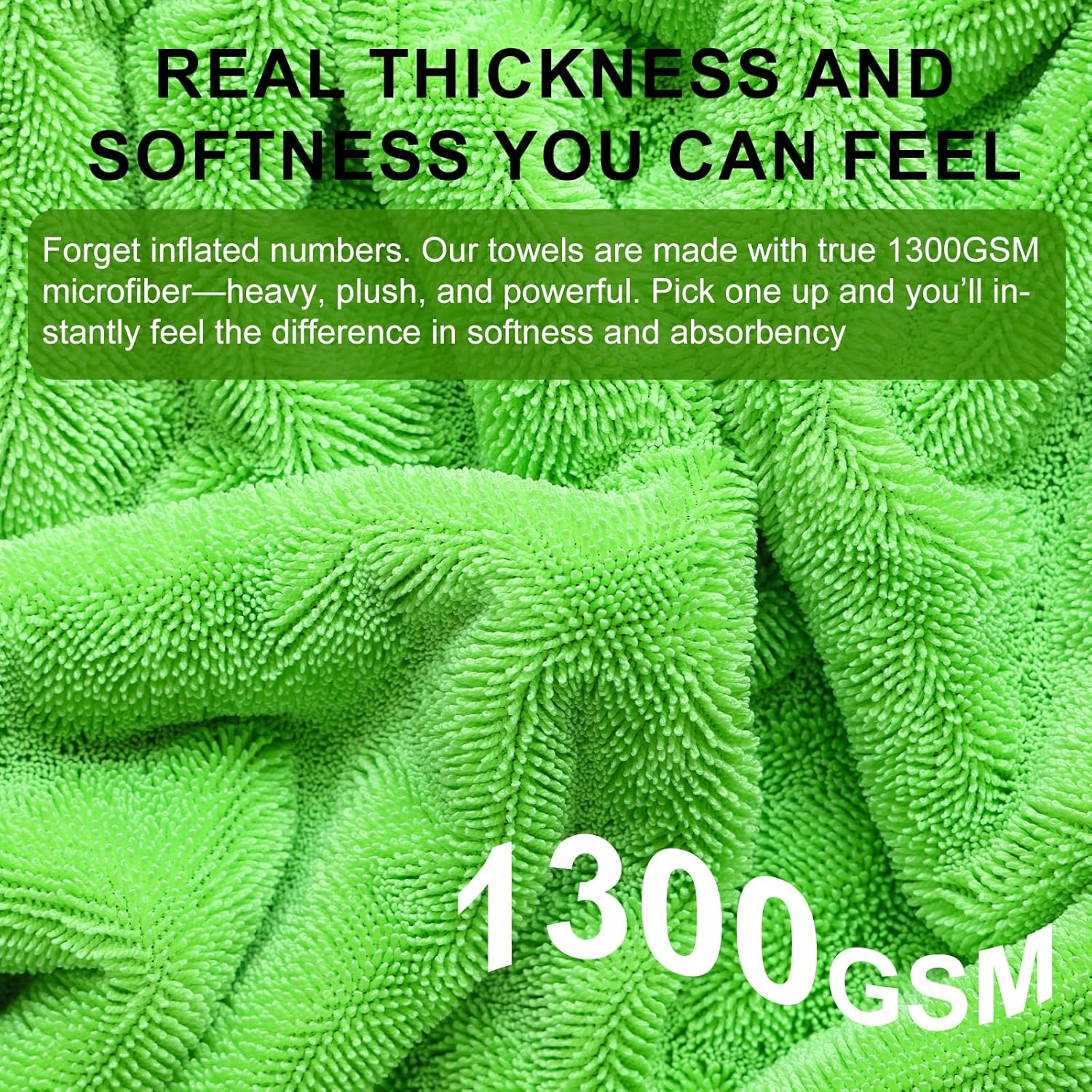 - Genuine 1300GSM – Real Thickness You Can Feel: Forget inflated numbers. Our towels are made with true 1300GSM microfiber—heavy, plush, and powerful. Pick one up and you’ll instantly feel the difference in softness and absorbency