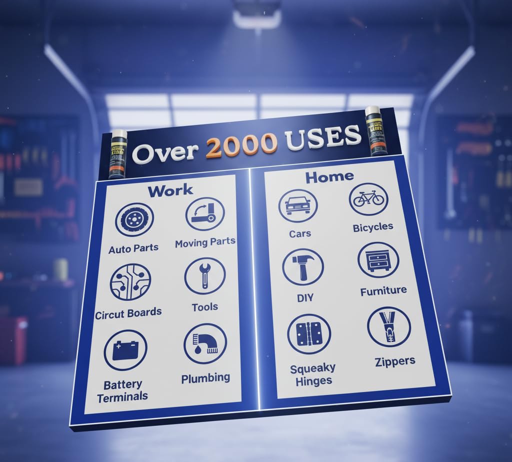- Versatile Compatibility: Ideal for garage doors, hinges, plumbing joints, bike chains, camping gear, and more. Quiets squeaky parts and extends the lifespan of moving components, saving on future repair costs. Safe for use on various materials, including metal, plastic, and rubber components, making it suitable for comprehensive maintenance of garage door systems.