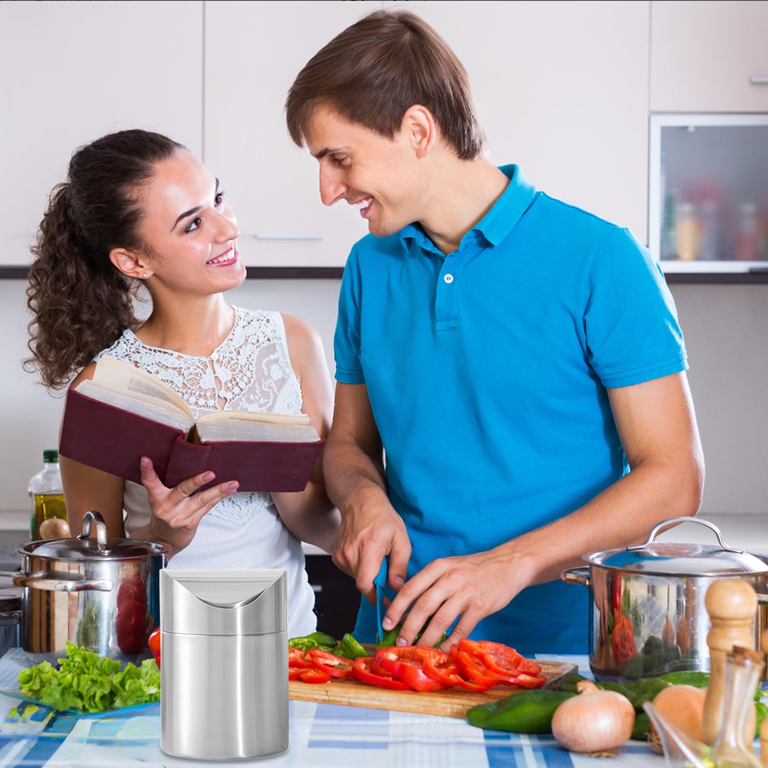 - PREMIUM MATERIAL - Our countertop trash can is made of 100% brushed stainless steel, firm and durable, rust-resistant, enough to endure the wear and tear of everyday use for longer without losing its aesthetic appeal.