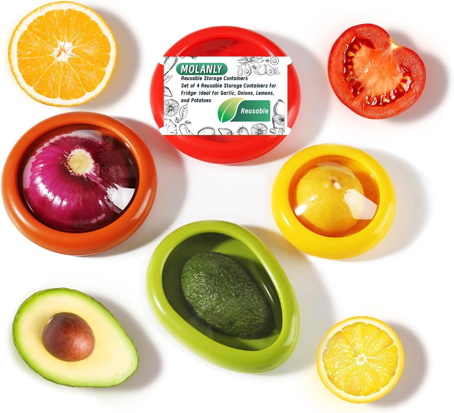 Set of 4 Saver and Tomato Holder - Reusable Storage Containers for Fridge - Fridge Organizer Ideal for Garlic, Onions, Lemons, and Potatoes