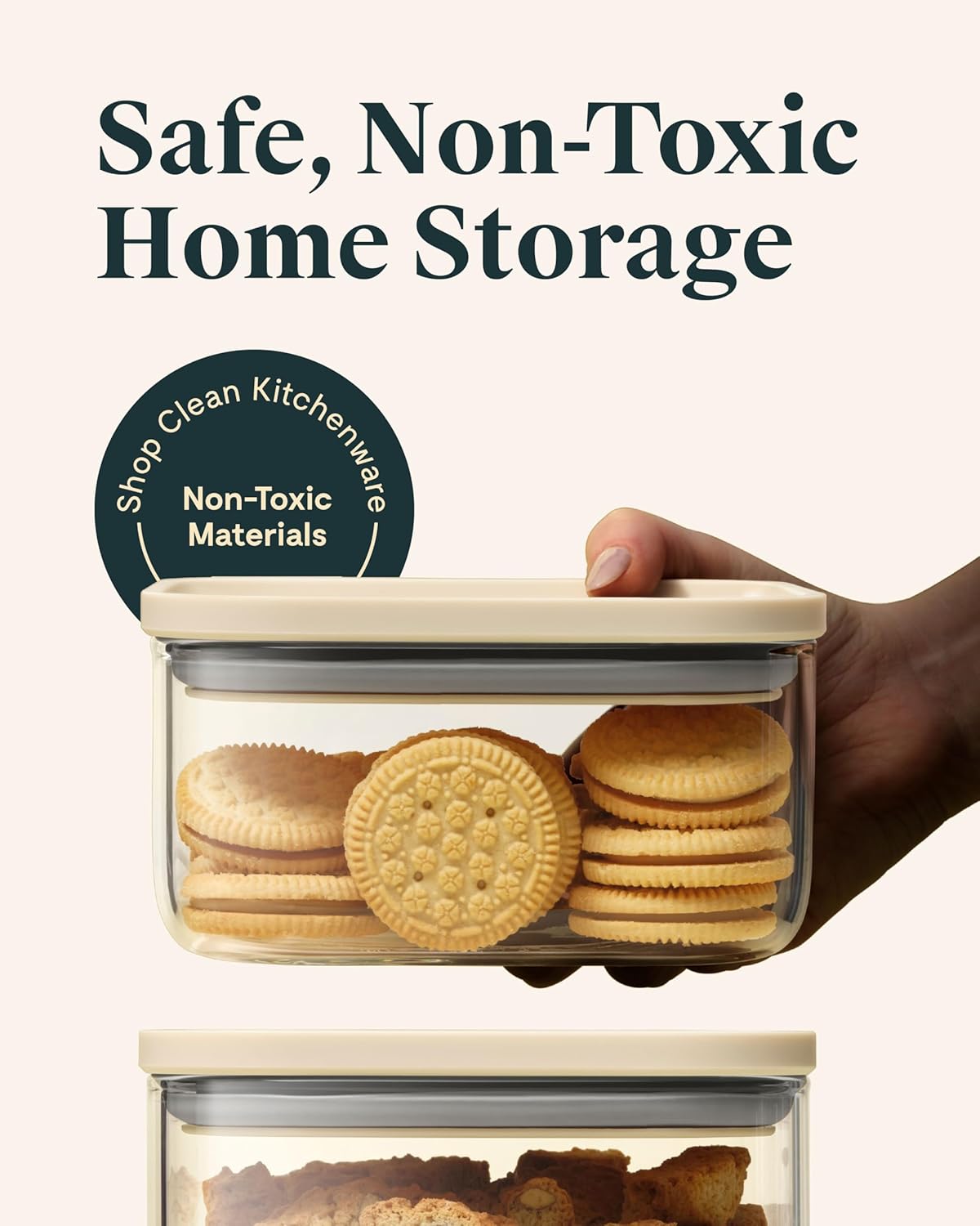 Caraway 1qt Glass Airtight Food Storage Container with Lid – Non-Toxic, BPA-Free Kitchen Storage Container – Stackable, Space-Saving Airtight Container for Dry Goods and More - Cream