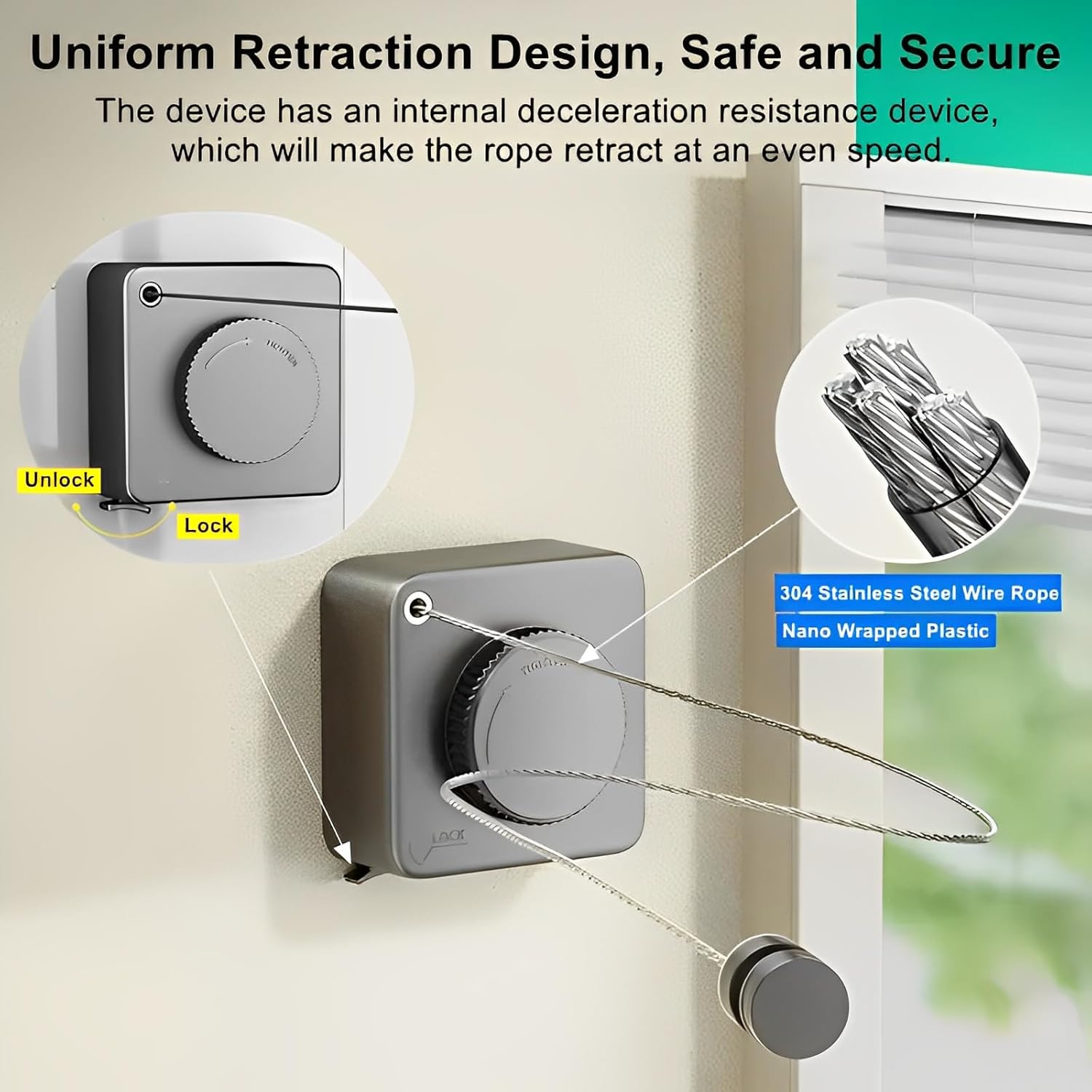 - 【Space Saving】Our washing line is designed with a retractable structure, which can be easily pulled out to meet drying needs when in use, and can be automatically retracted and retrieved when not in use, taking up almost no space,you will even ignore that you have a clothesline in place. Whether it's a small balcony, a compact bathroom, or a multi-functional living space, it fits in seamlessly and maximises the use of space;