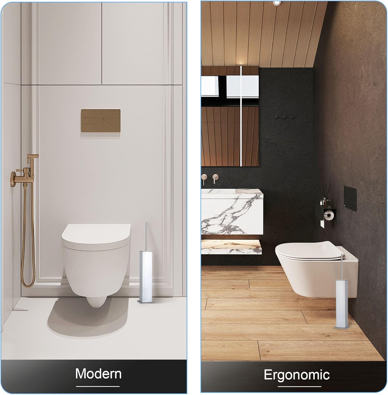 - Sleek Modern Accessory – The reflective chrome finish and slim profile complement any décor, fitting neatly beside your toilet without hardware.