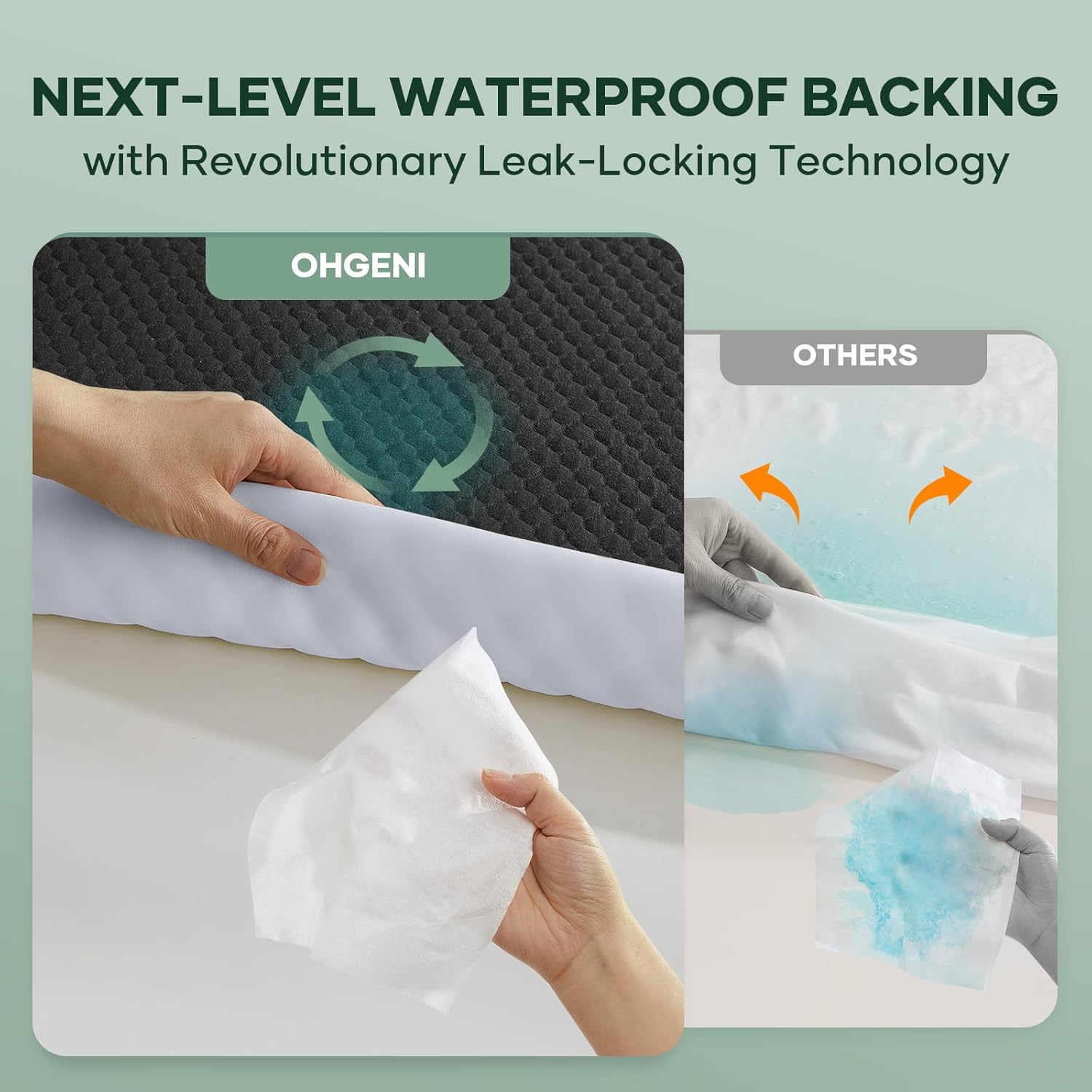 OhGeni 100% Waterproof Mattress Protector, Queen Size Mattress Pad, Fits 6"-20" Mattresses with Deep Pocket, Cooling, Breathable Fitted Sheets, Soft Bed Cover, Noiseless, Machine Washable(Black)