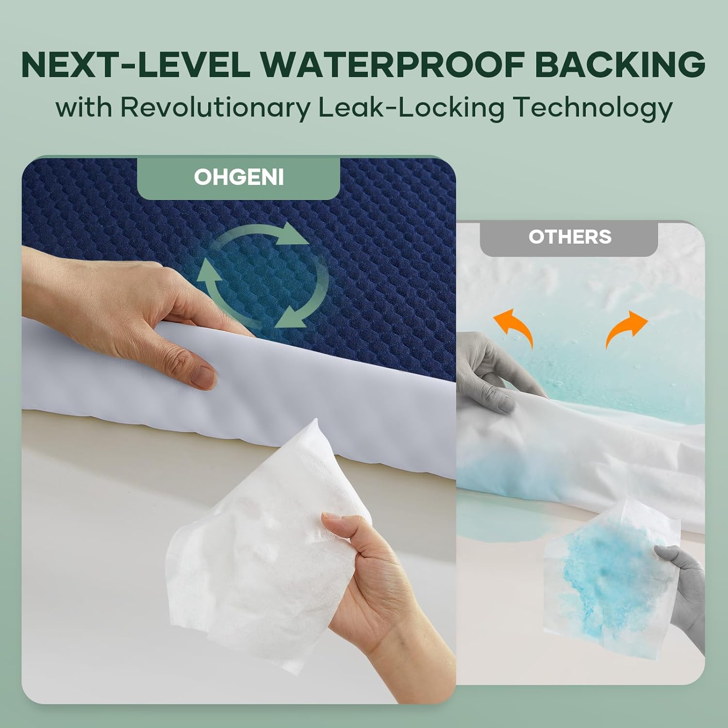 OhGeni 100% Waterproof Mattress Protector, King Size Mattress Pad, Fits 6"-20" Mattresses with Deep Pocket, Cooling, Breathable Fitted Sheets, Soft Bed Cover, Noiseless, Machine Washable(Navy Blue)