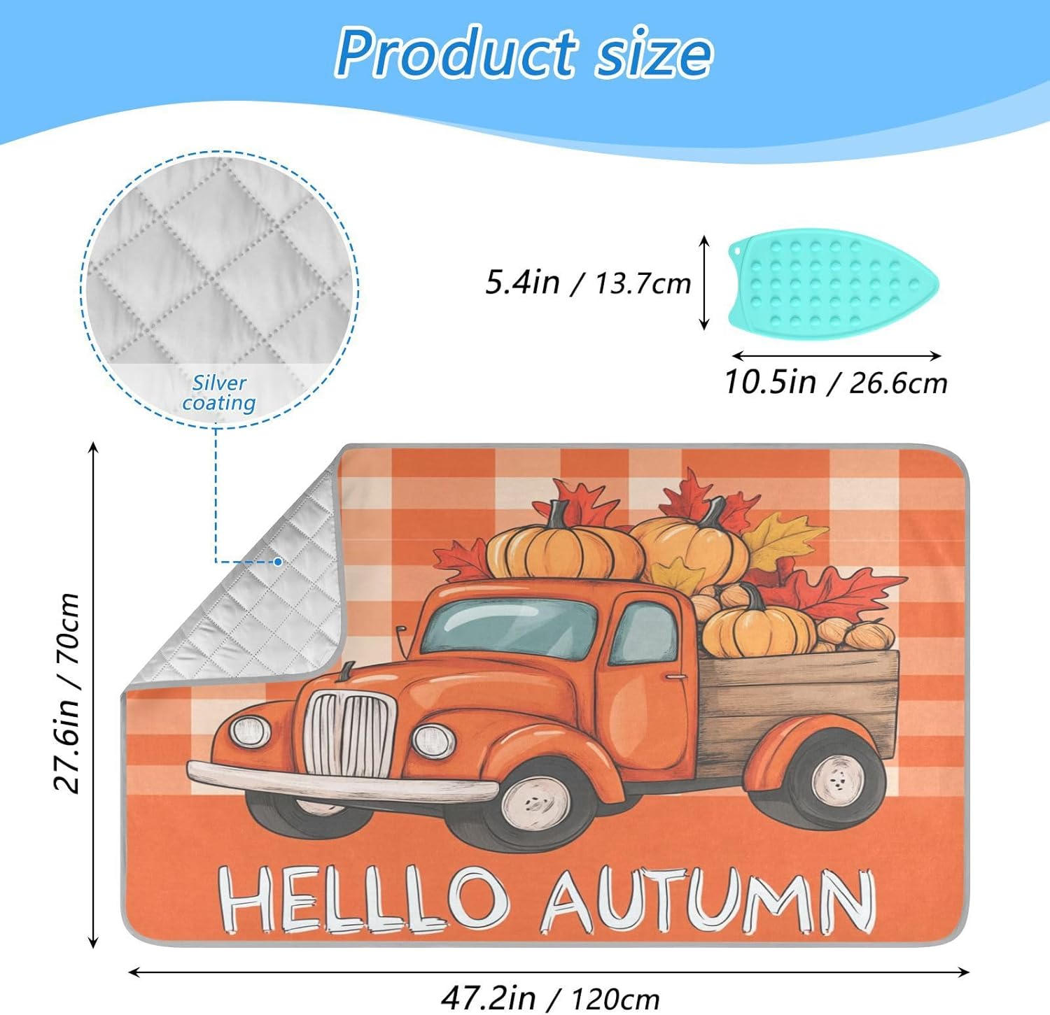 Ironing Mat Portable Ironing Pad Ironing Blanket for Table Top Heat Resistance Double-Side Using Travel Large 47.2 x 27.6 Inch Foldable Lightweight Autumn Truck Pumpkin Leaves