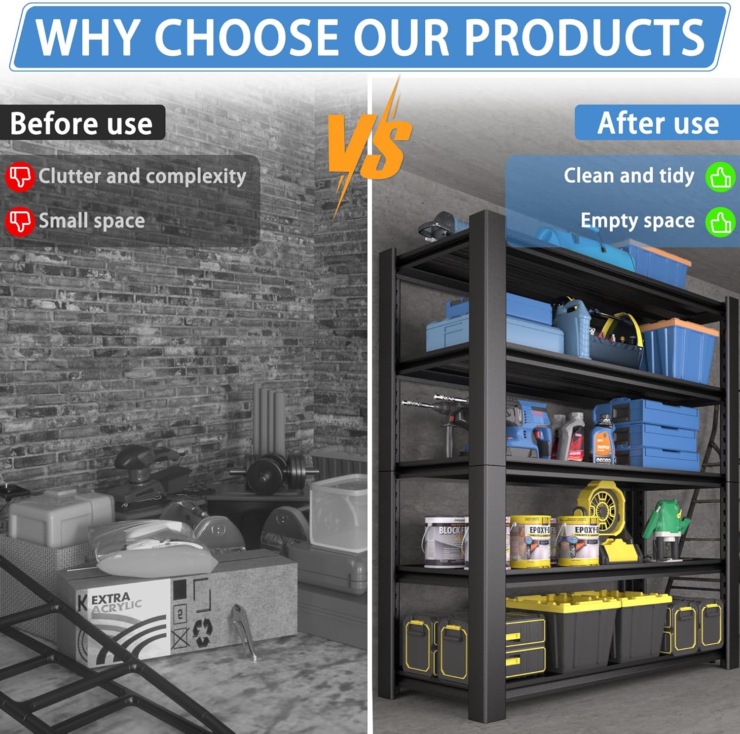 - Versatile for Any Space & User: This metal shelving unit declutters and organizes any area where you need storage. It's ideal for the garage, workshop, basement, pantry, utility room, or warehouse โ holding tools, supplies, and household items with ease. Perfect for DIYers, mechanics, homeowners, renters, and handymen seeking a dependable storage solution.