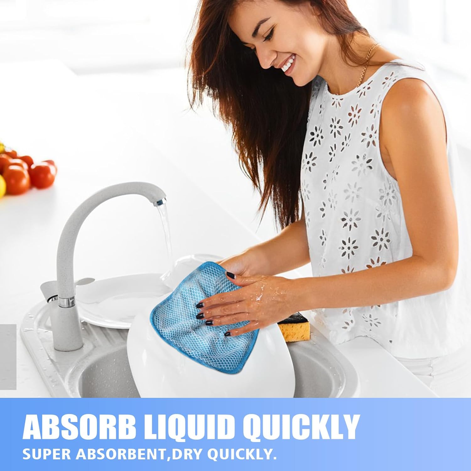 - ABSORB LIQUID QUICKLY WASHCLOTH FOR KITCHEN: These dish cloths are super absorbent, dry quickly, and any stains or grime from wiping counters washes right out with warm sopy water. Works well for buffing hard water spots from wet dishes