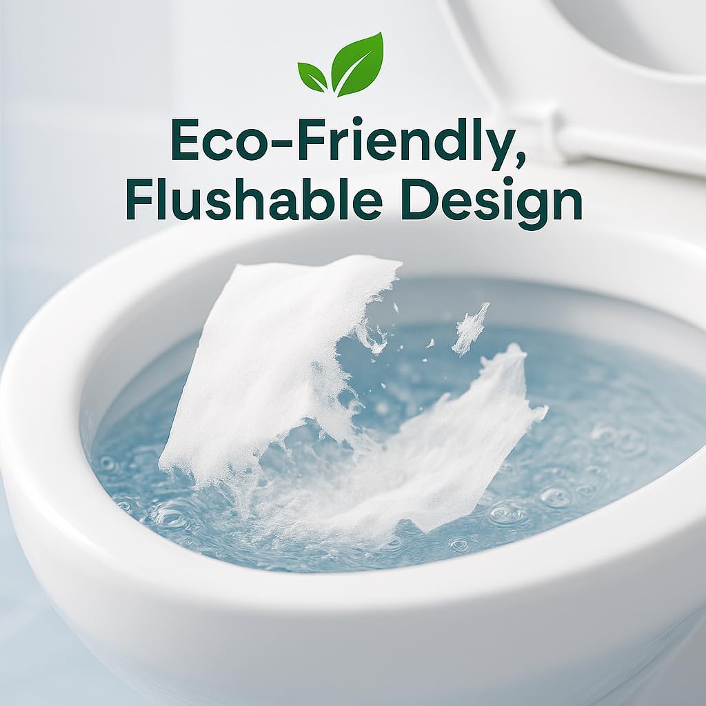 - Flushable & Septic-Friendly β Designed to dissolve quickly in water without clogging, safe for most home toilets and public restrooms. Strong enough for use, yet breaks down fast after flushing.