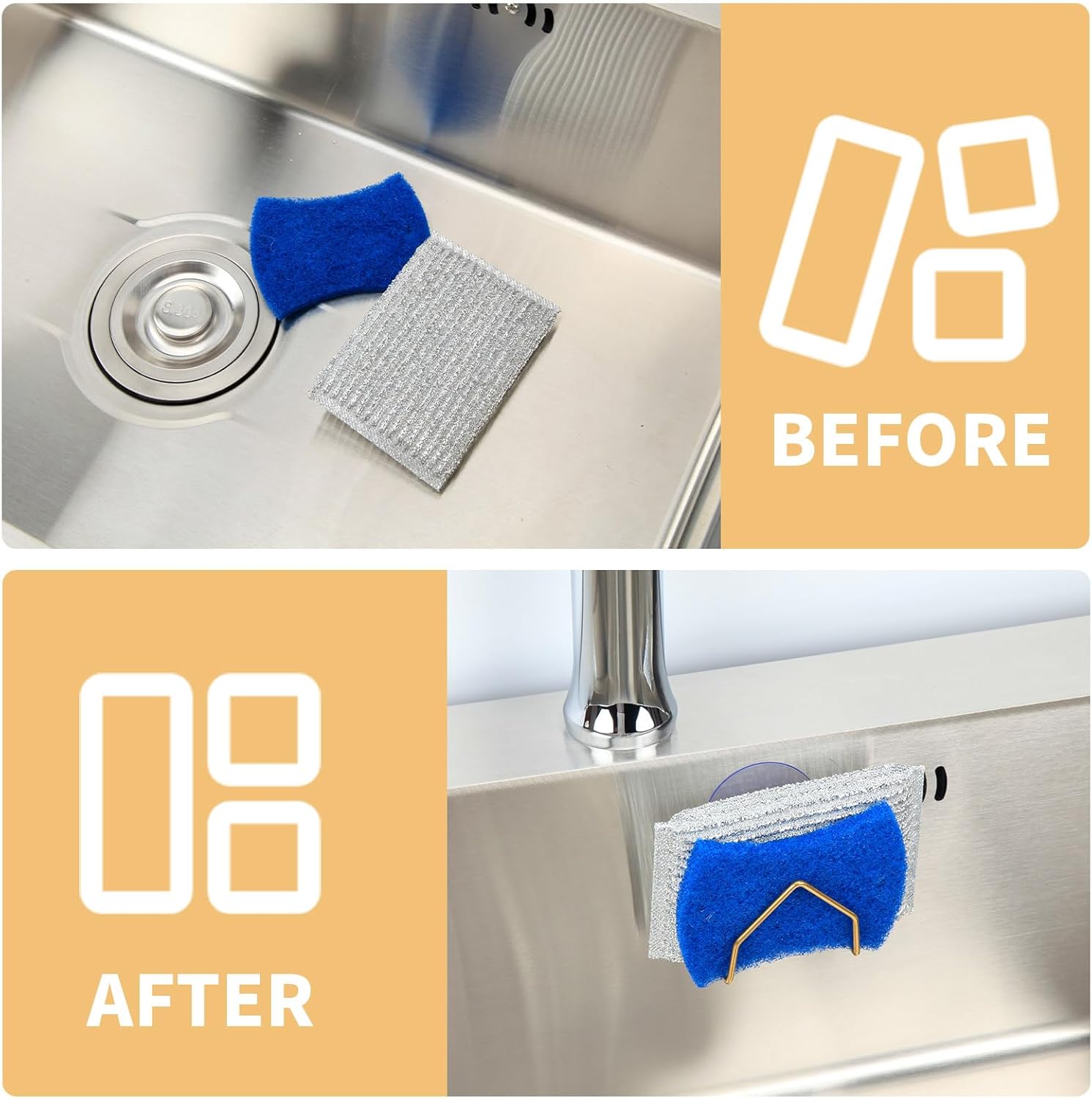 - [Keep Clean] This kitchen sink organizer features an open wire design that allows items to dry more efficiently after use.