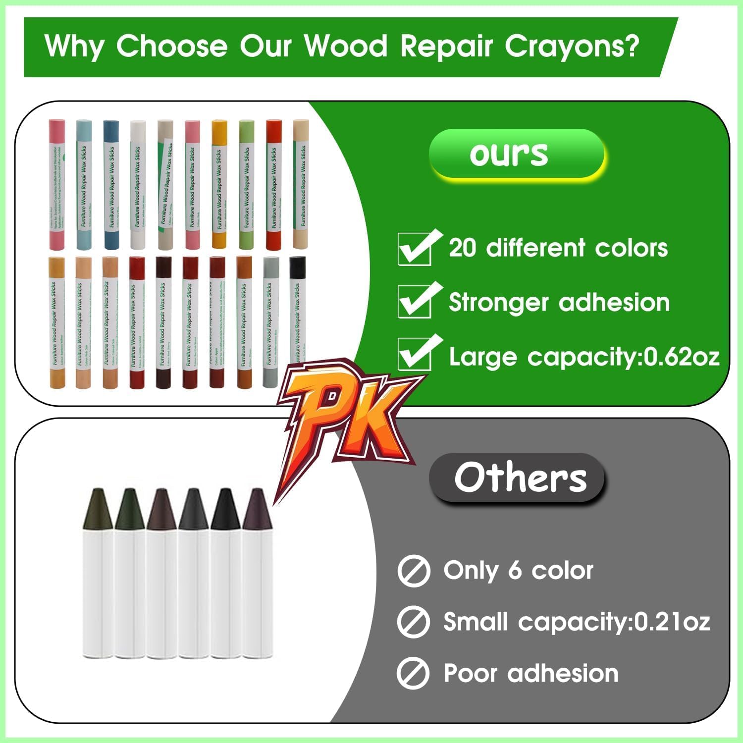 - 【Application】: Our Furniture Crayons are suitable for any wooden items and can effectively repair scratches on wood floors and furniture like beds, shelves, cabinets, tables, frames, doors, wood veneers, desk furniture, decorations and much more.