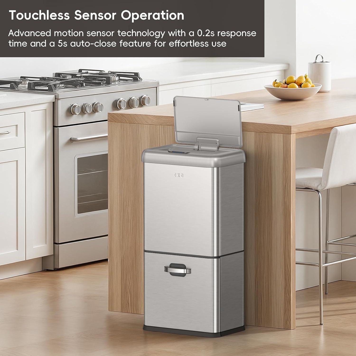 - Premium Motion Sensor Technology β Equipped with a lightning-fast 0.2-second sensor and whisper-quiet soft-close lid for a seamless user experience with this automatic trash can.