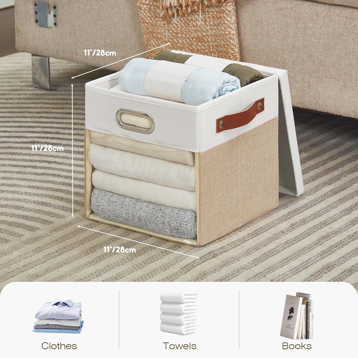 - Practical Design: The storage cubes with a lid size 11 x 11 x 11 inches (28 x 28 x 28 cm), which can perfectly organize closets, shelves, or children's rooms while keeping the space tidy and fashionable. The PVC clear window makes it effortless to identify the content at a glance, allowing you to easily find what you need!