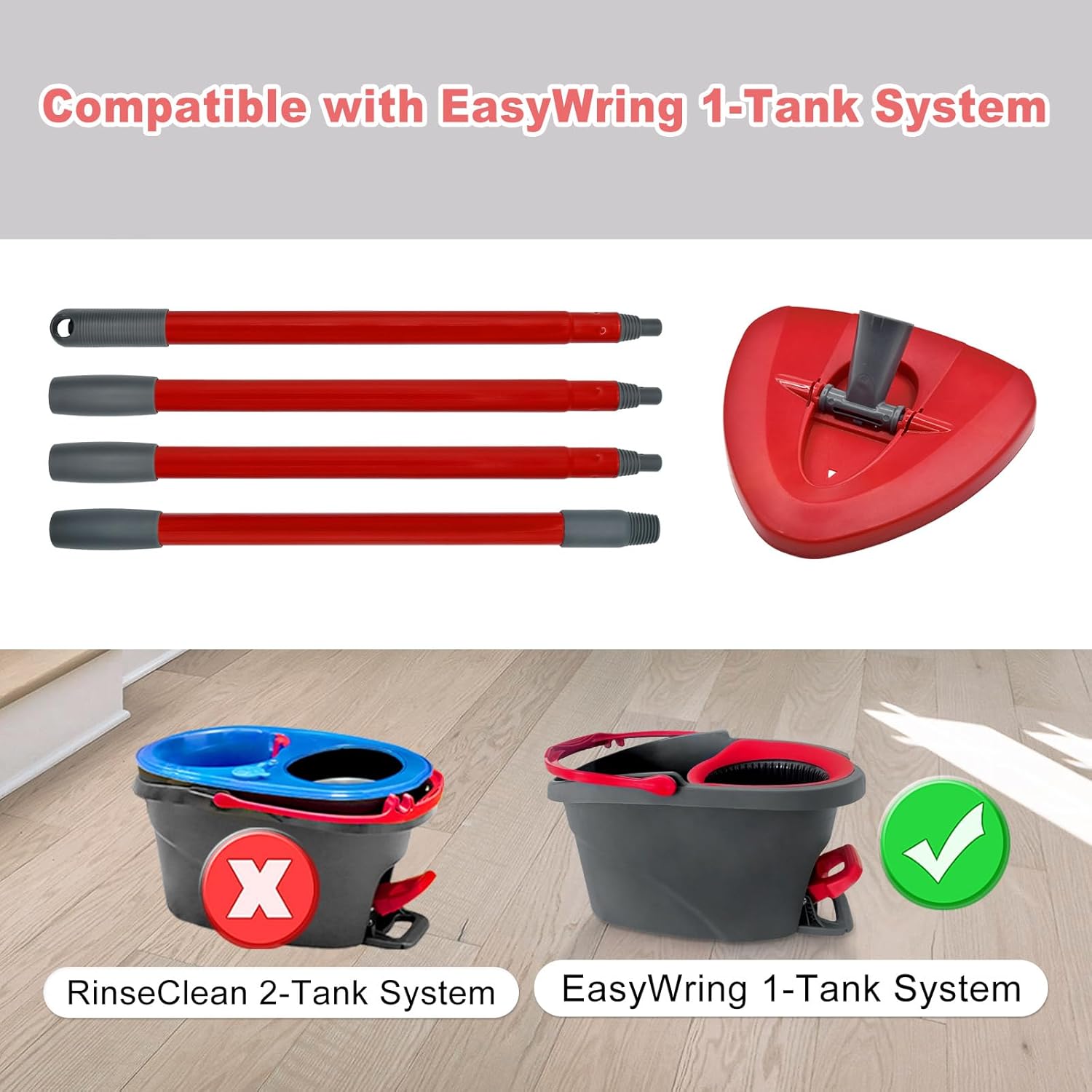 - This mop handle and base set features Germany-style threaded joints, specifically designed to work for O Cedar EasyWring 1-Tank System mop bucket and mop head/base. Important: It is not compatible with American-threaded connections. Please verify that your mop head's threading matches our design before purchasing.