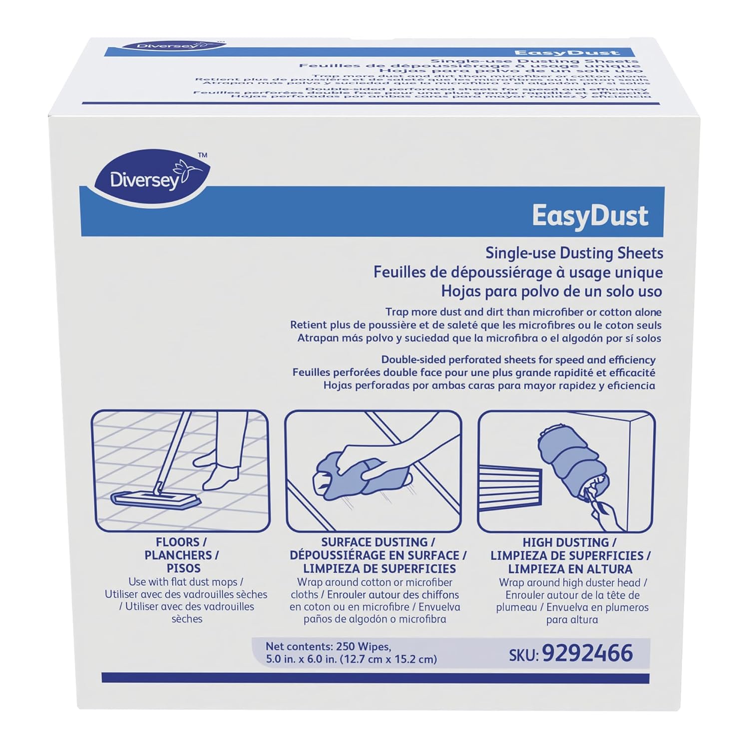 Diversey 9292466 EasyDust Single-use Dusting Sheets, Disposable Multisurface Cleaning Wipes for Floors, Dust Wipes Trap Dirt, Unscented 5x6-inch Sheets, 250-Sheets, 1-Box