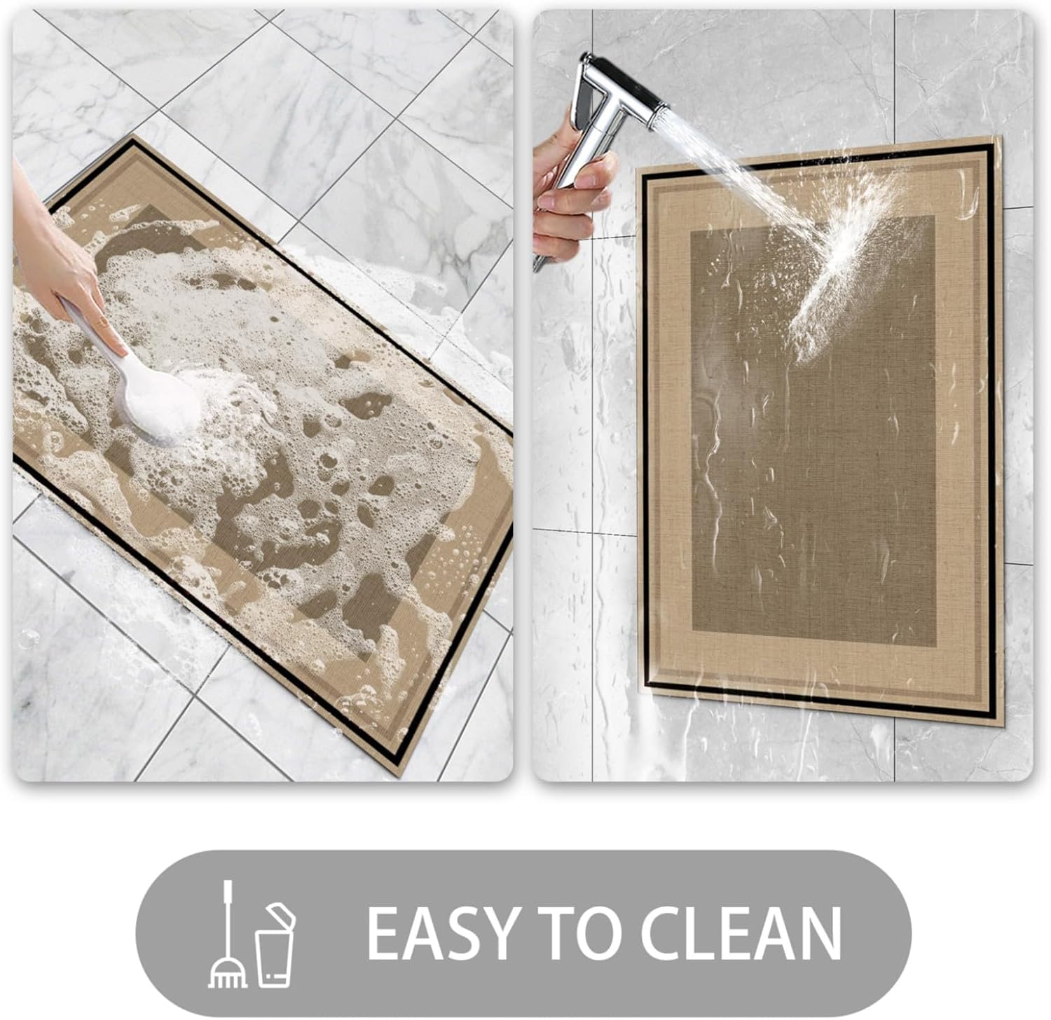 - 【Absorbent & Quick-Dry】Crafted with diatomaceous earth, this mat can absorb up to 1.9 gallons of water per square yard, making it perfect for high-moisture areas like bathrooms. Use it as an entrance mat to protect your floors from water damage, dirt, and debris, ensuring a clean and dry living space