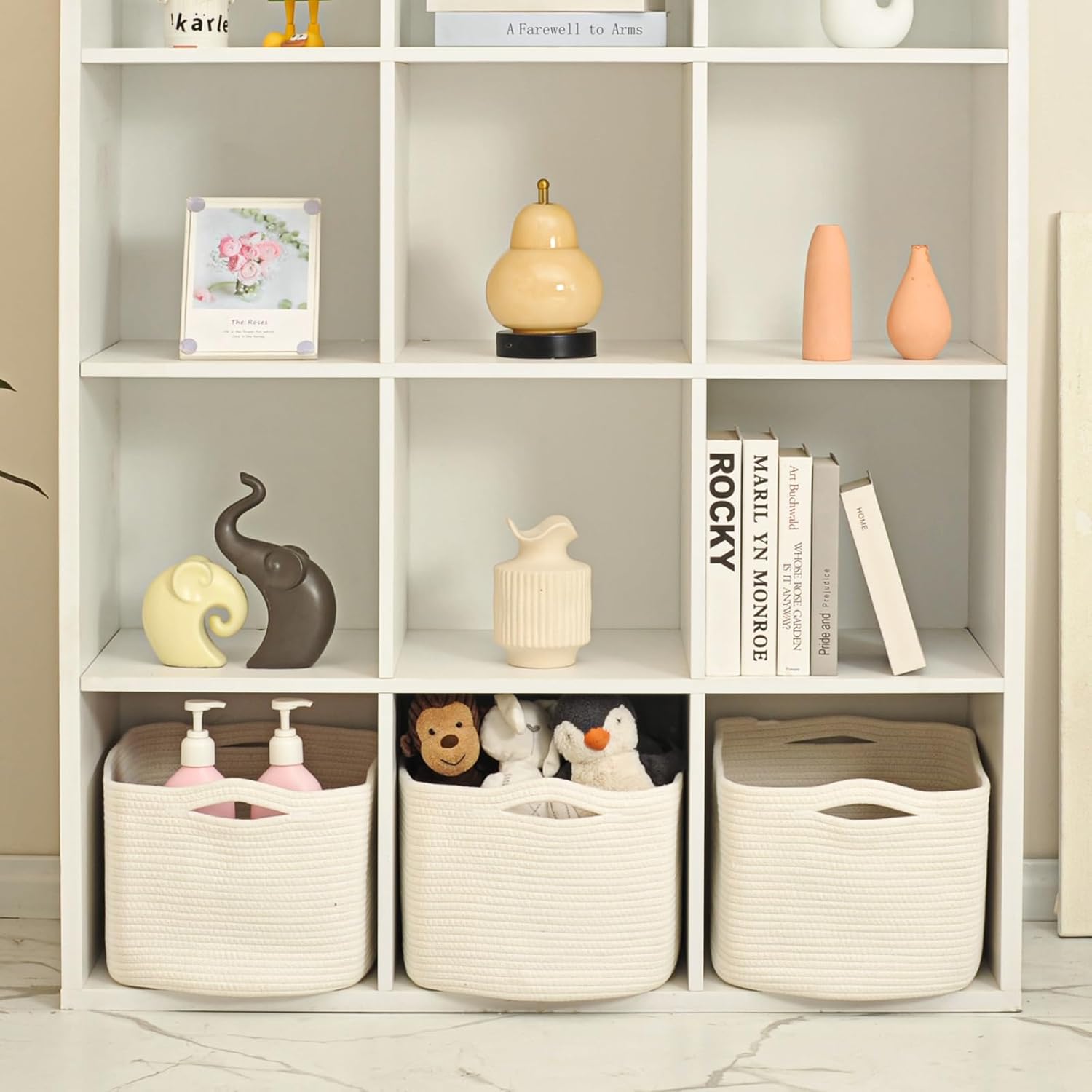 - Multi-functional Design: Our white storage basket is the perfect solution to tackle everyday clutter. It accommodates various items such as clothes, toys, books, and cosmetics, helping you maintain a tidy and organized living space