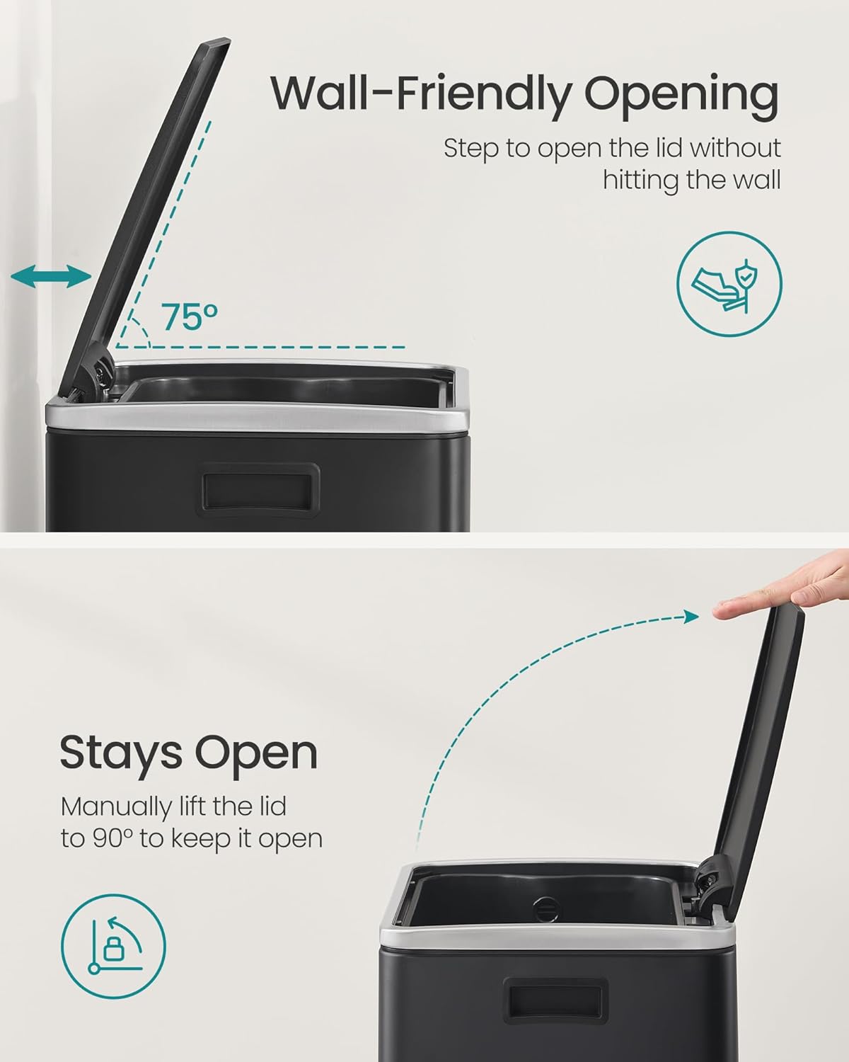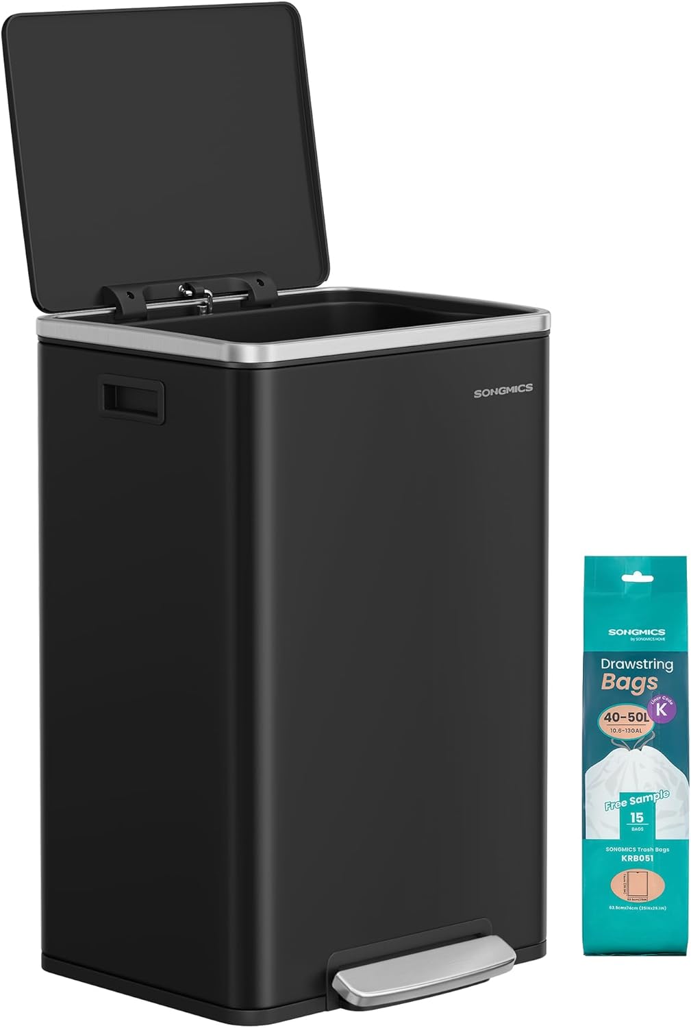 - Ready to Use: For maximum convenience, 15 bin liners are included. This bin is compatible with SONGMICS 13-gallon trash bags (liner code K), providing a ready-to-use solution upon delivery