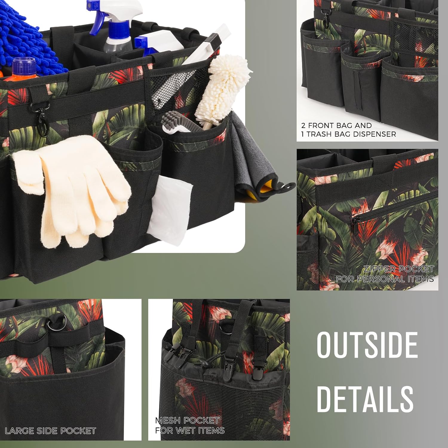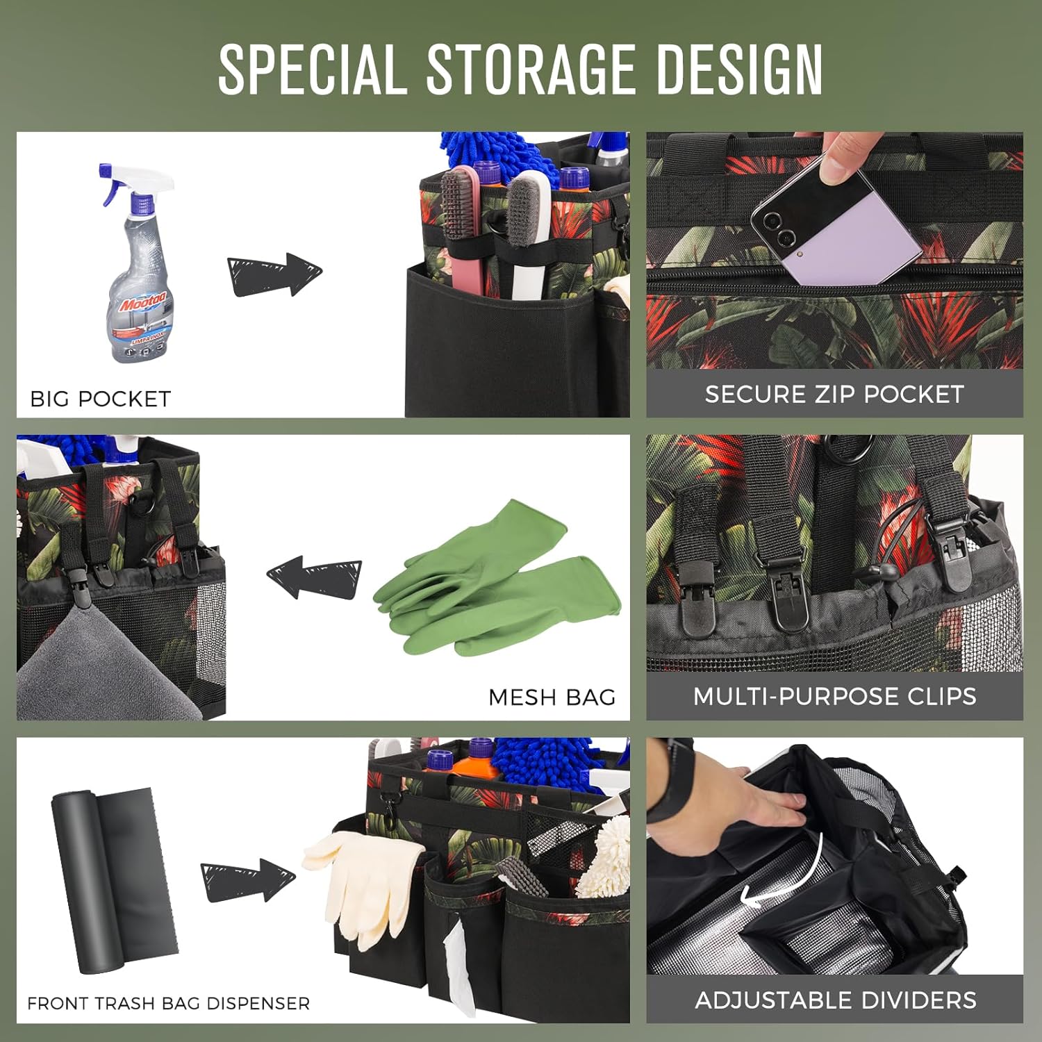 - Large Wearable Cleaning Caddy: Our cleaning organizer bag is perfect for storing cleaning supplies & tools, measures 15.7 x 9.6 x 9.1 inches. Cleaning caddy bag with handle and adjustable shoulder straps for easily cleaning in the home, kitchen, sink, car, and outside. Keep your cleaning items well-organized and neatly. Great for maids and housekeepers