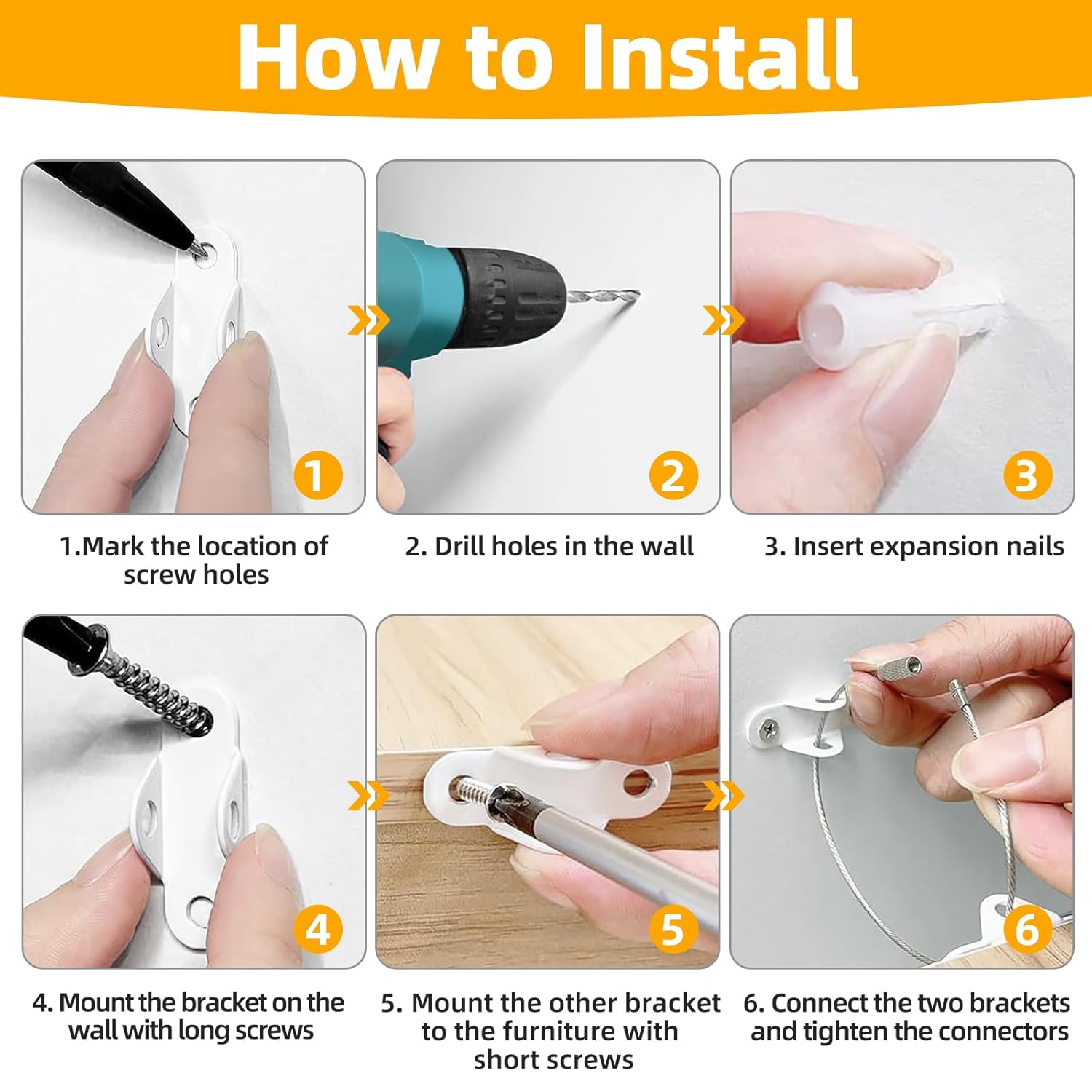 - BABY SAFETY AND PROTECTION : We understand that children's curiosity is everywhere and can lead to dangerous tipping accidents when they try to climb on furniture. This child safety furniture anchor can securely hold the furniture, even with up to 400 pounds of pressure, to ensure that the furniture is stable and does not fall over, providing all-around protection for your child.
