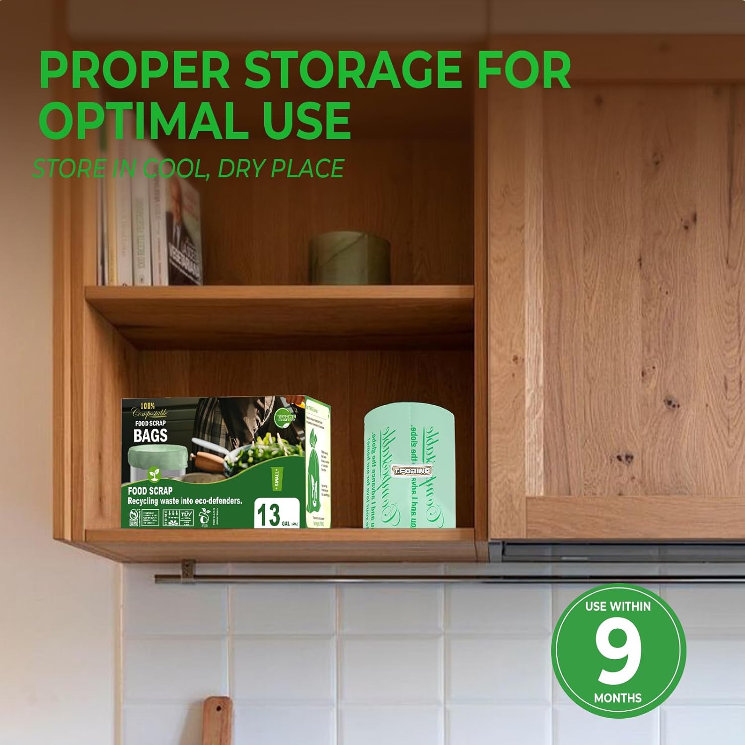 Compostable Trash Bags, 13 Gallon / 49.2 Liter, 45 Count, Extra Thick 0.9 Mil Tall Kitchen Food Scrap Bin Liners, Certified by BPI, CMA & OK compost HOME