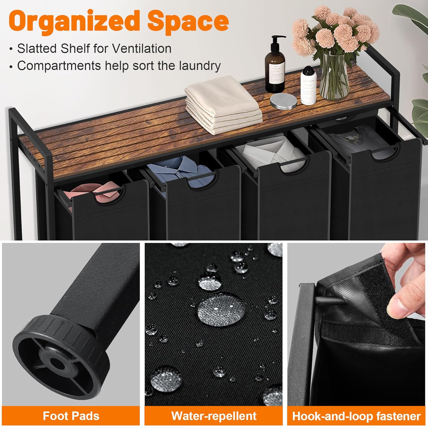 - Large Capacity - Featuring a 40 gallons capacity and an integrated open-shelf design, this laundry hamper helps you make the most of your storage space, easily accommodating both your clothes and accessories.